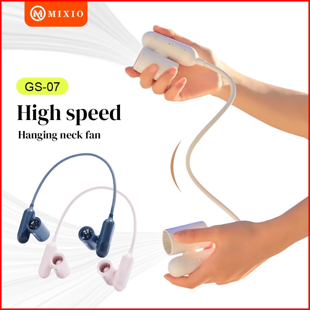 Mixio Gs-07 Premium High Speed Neck Dual Turbo Fan Portable Strong Kipas Angin Leher Adjustable Turbo Kipas Untuk Olahra