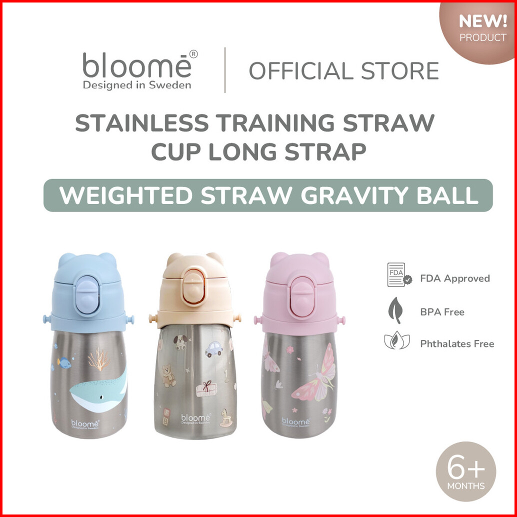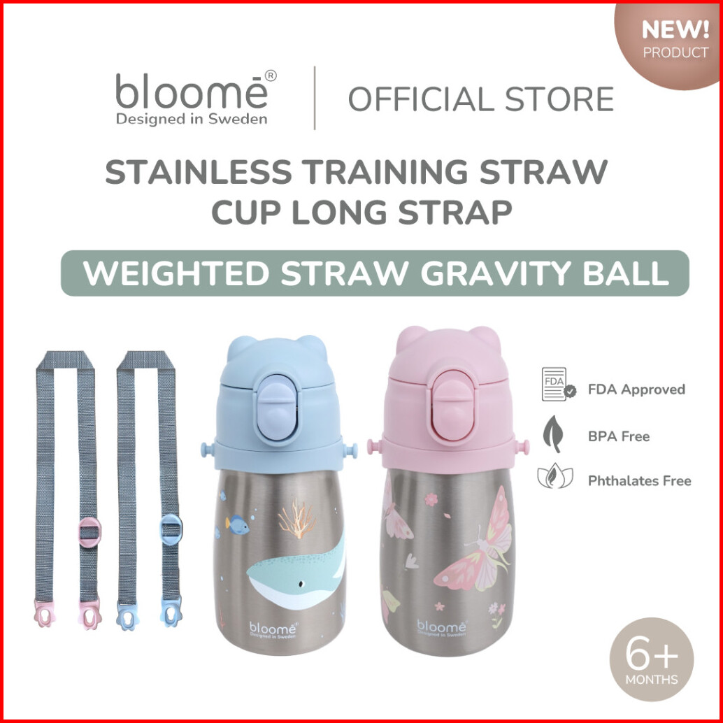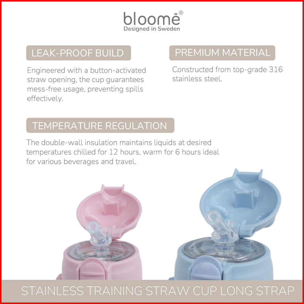 Bloome - Stainless Training Straw Cup With Strap - Botol Minum Anak 300ml With Premium Stainless 316