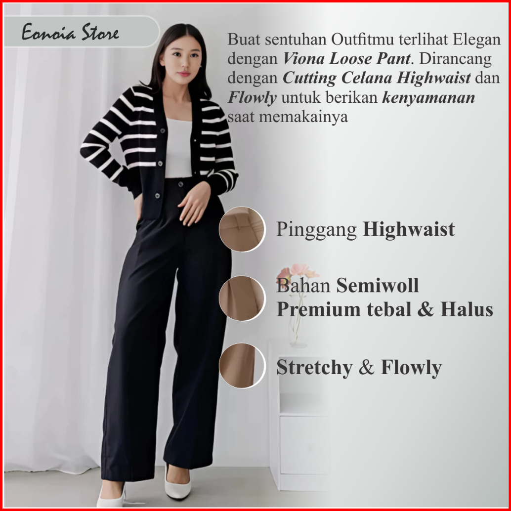 Viona Pant - Celana Loose Pants Trouser Wanita Anti Kusut - Celana Casual Wanita Korean Look