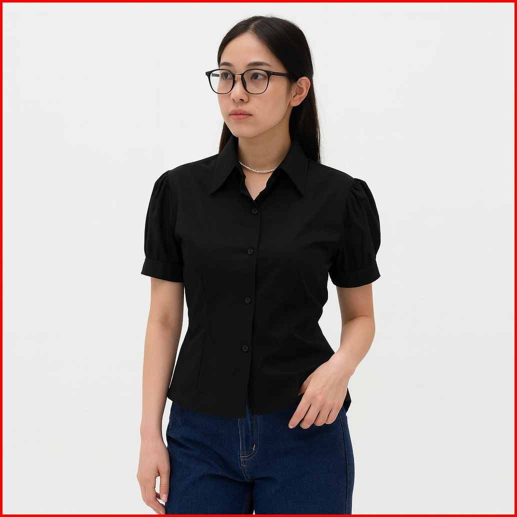 Abbey Fitted Shirt Kemeja Katun Wanita Blouse Lengan Pendek Panjang Casual Korean Style Longsleeve
