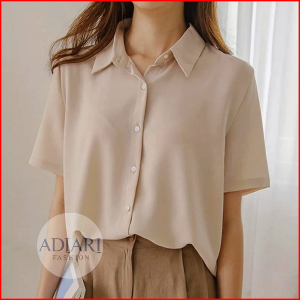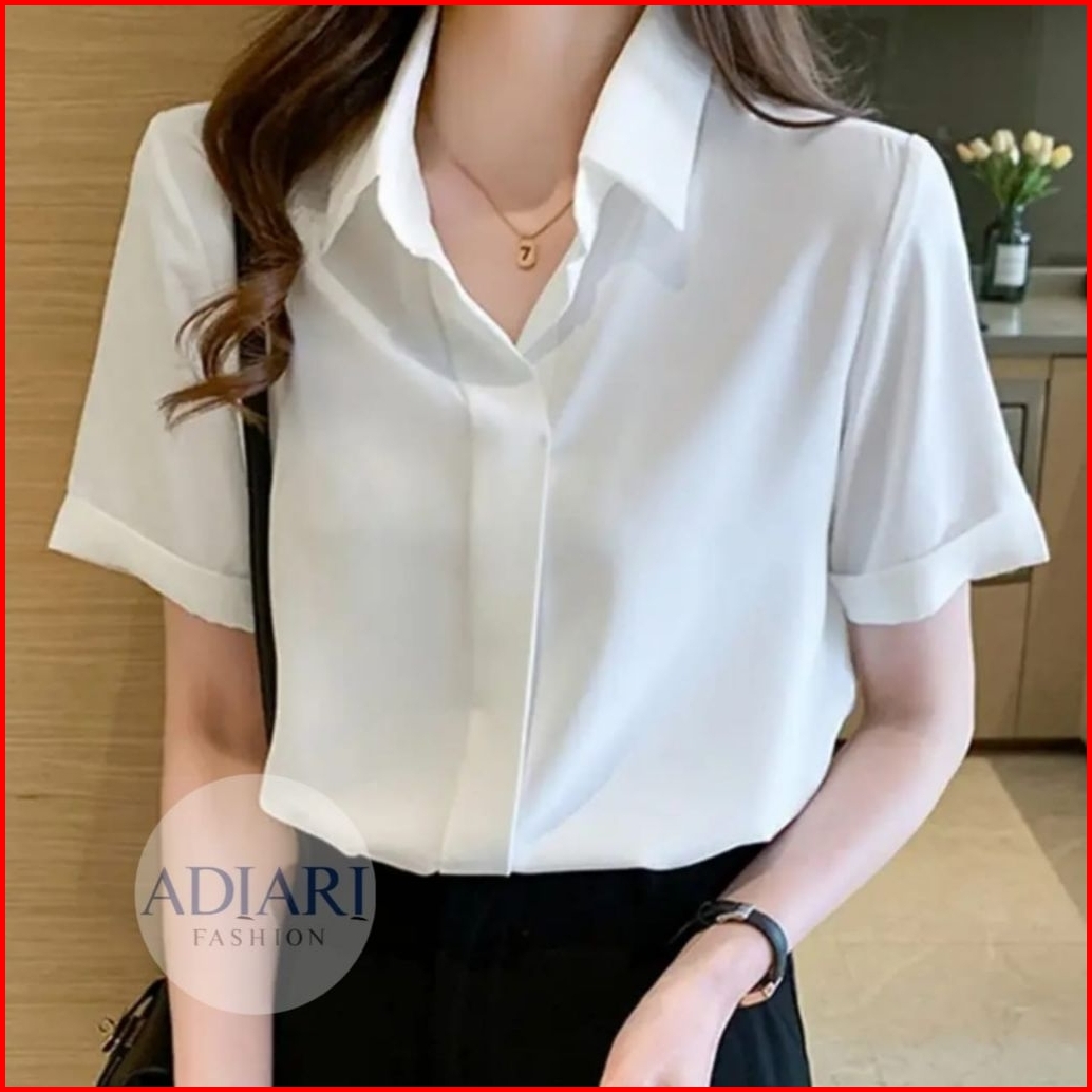 Baju Kemeja Wanita Pendek Kemeja Hitam Putih Kemeja Atasan Pendek Wanita Basic Kerja Kasual Formal