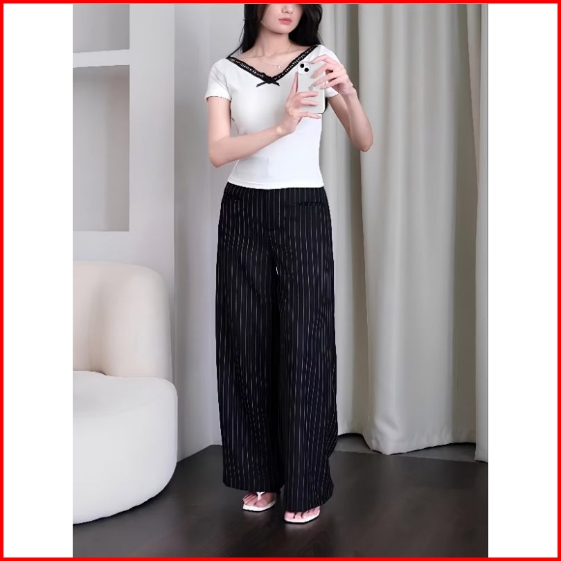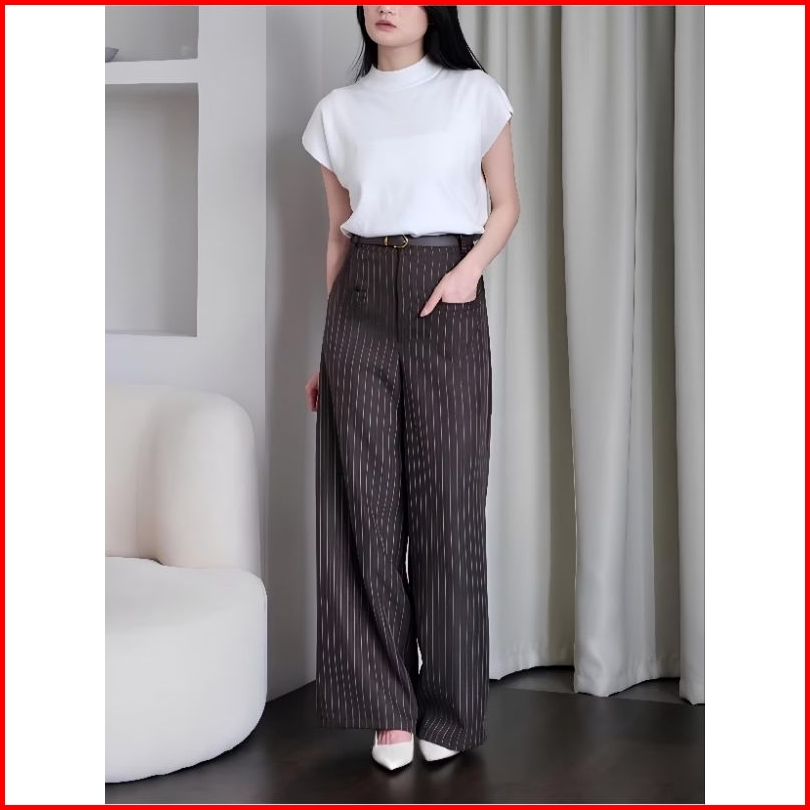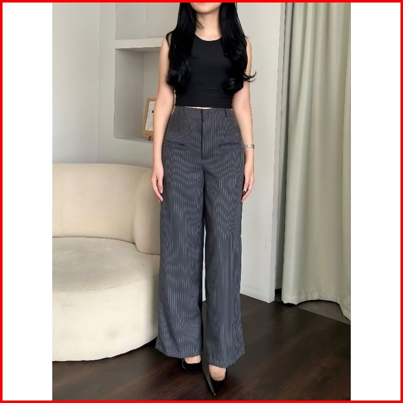 Elora Pants - Loose Pants Stripe Trousers Wanita - Celana Kerja Wanita Highwaist Kantor - Kulot Premium Anti Kusut