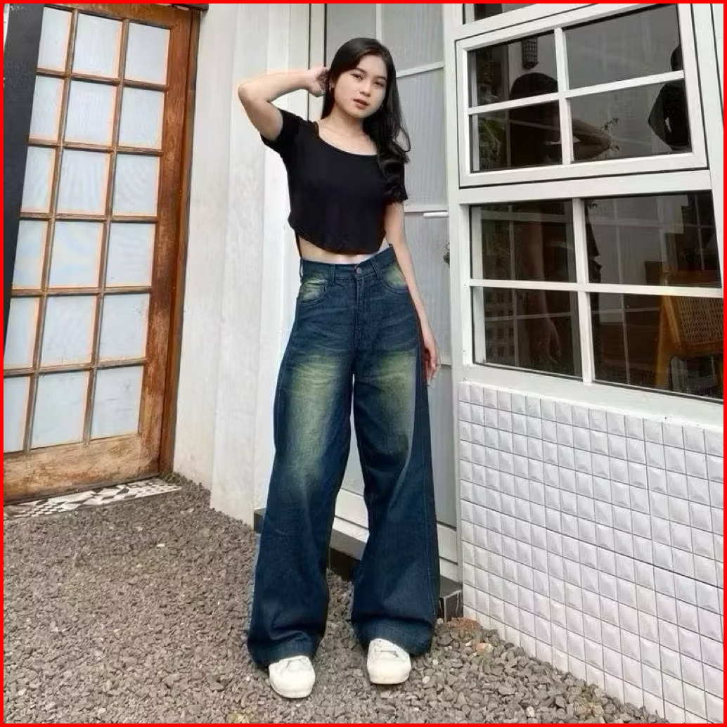 Celana Highwaist Celana Gombrong Skena Wanita Baggy Jeans Wanita Loose Retro