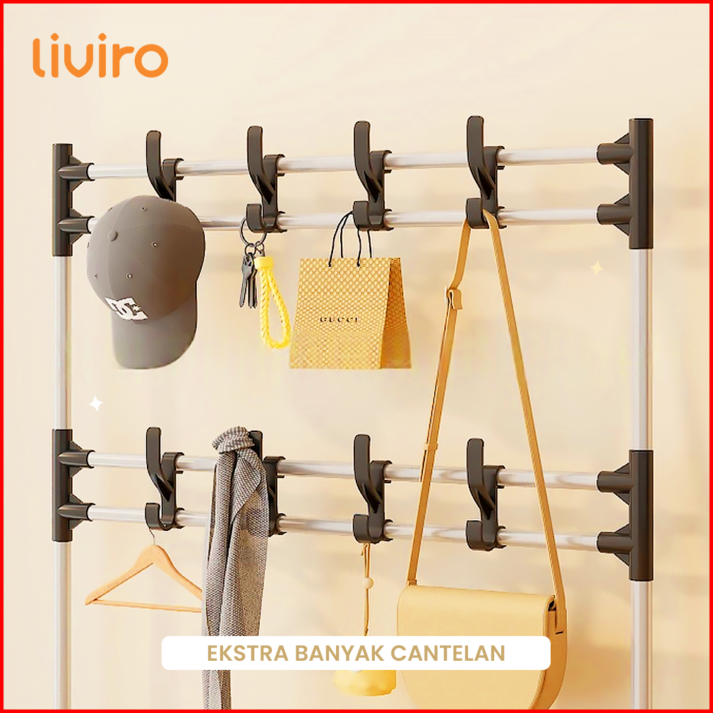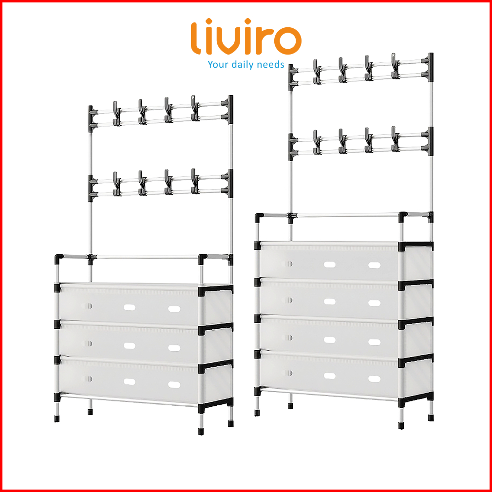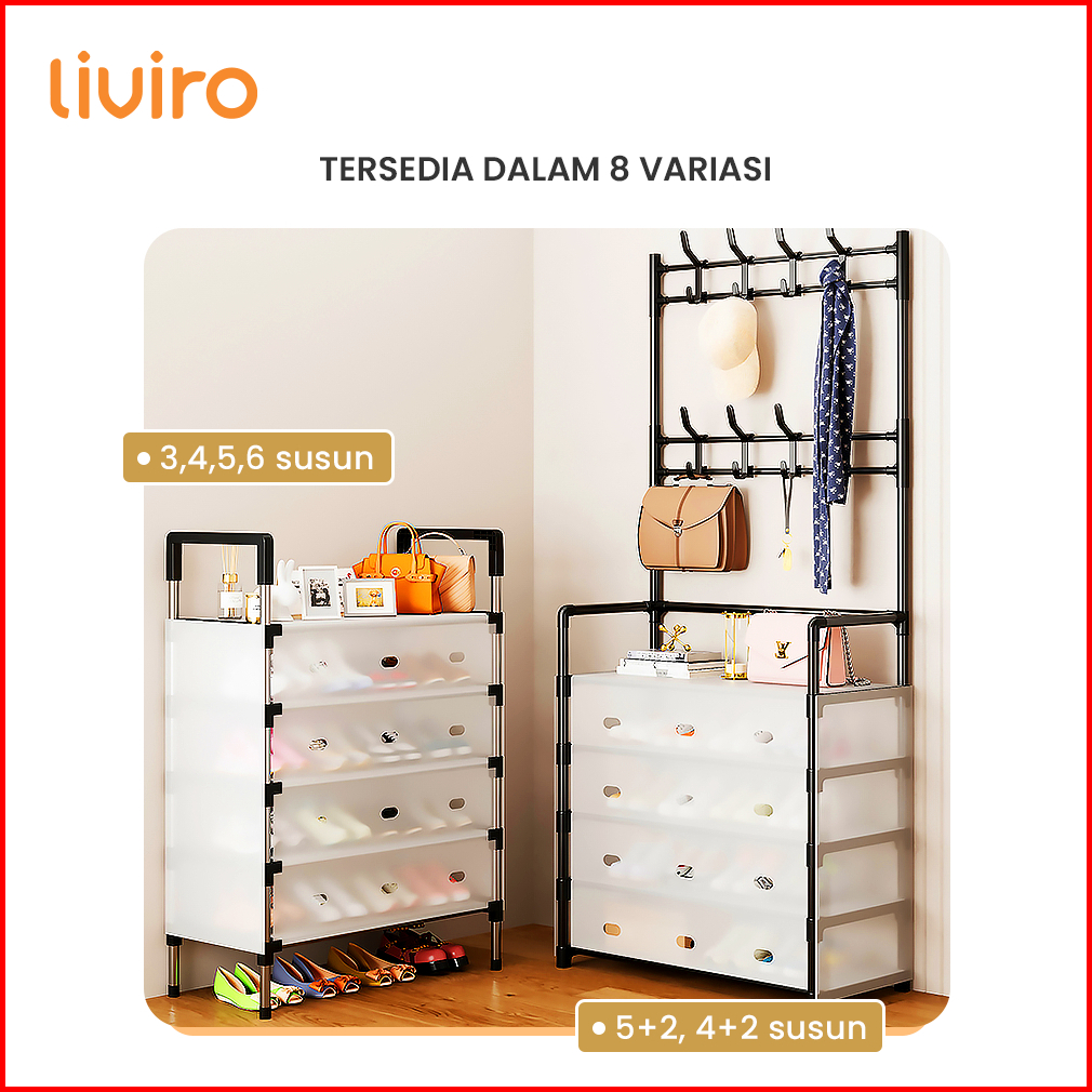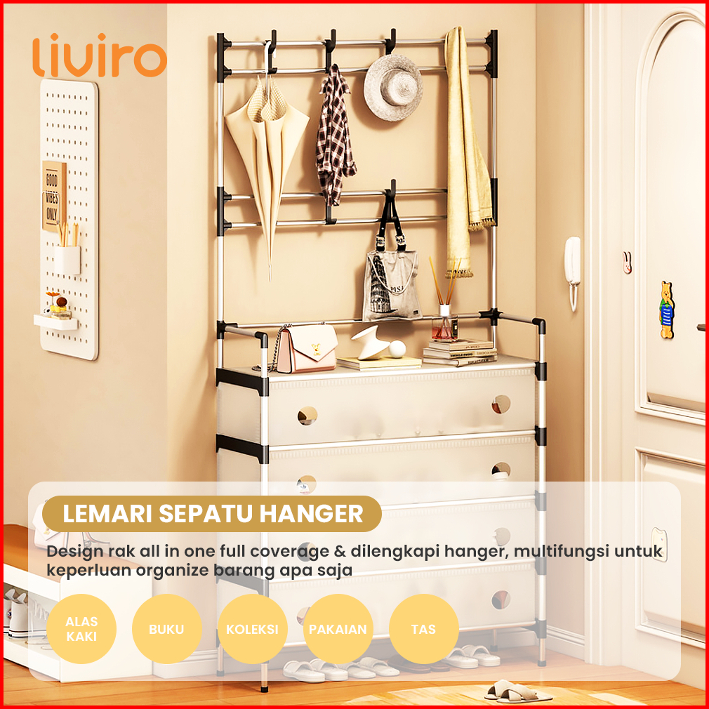 Liviro Rak Sepatu Stainless 6 Susun Tertutup Kokoh Dengan Gantungan Tas Topi Minimalis