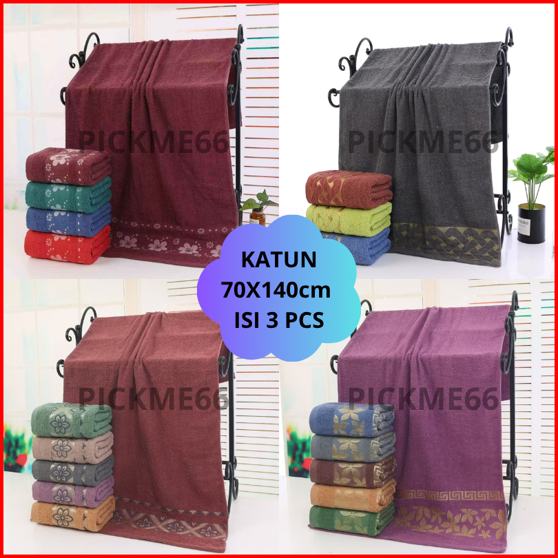 3 Pcs Handuk Katun Ukuran Standart Dewasa 70 X 140 Cm Warna Motif Random - Murah
