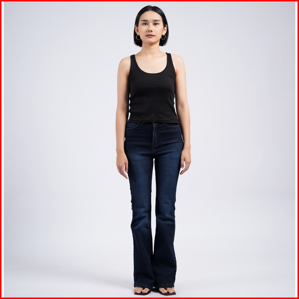 My Lavra Celana Cutbray Jeans Highwaist Dark Blue