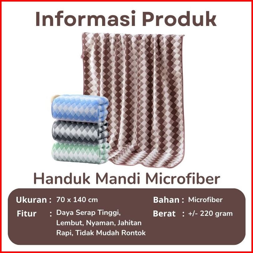 Handuk Mandi Dewasa Quick Dry Microfiber Bulu Kotak 70x140cm Handuk Mandi Tebal Menyerap Air H72c