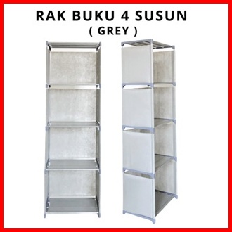 Rak Buku 5 Tingkat 4 Susun Lemari Kain Portable Tutup Belakang Penyimpanan Baju Helm Rak Serbaguna
