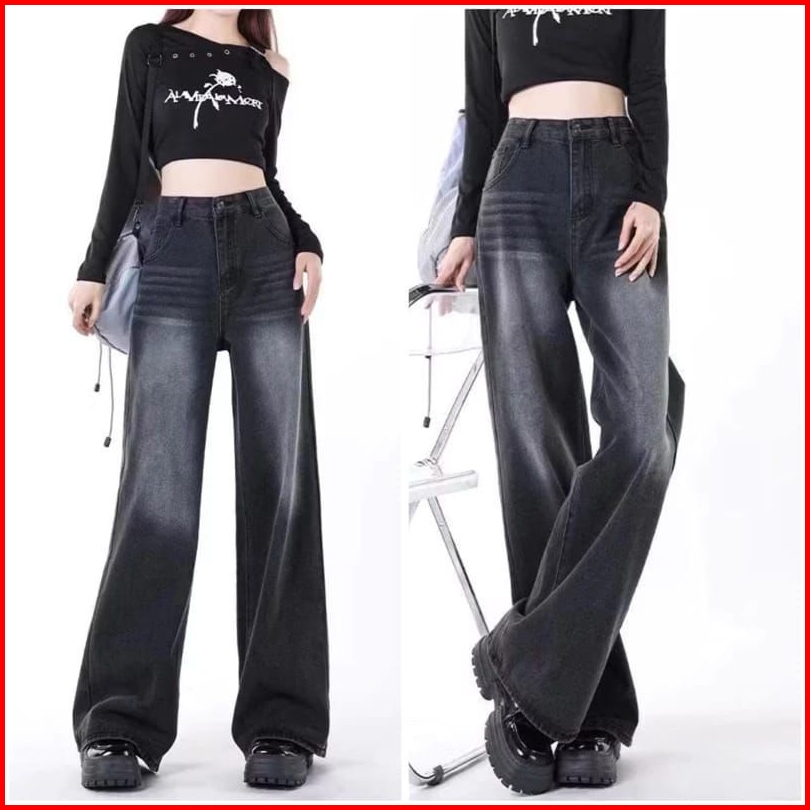 Highwaist Baggy Jeans Hangover Wanita - Celana Jeans Loosepant Gombrong Wanita Jeans Premium Quality