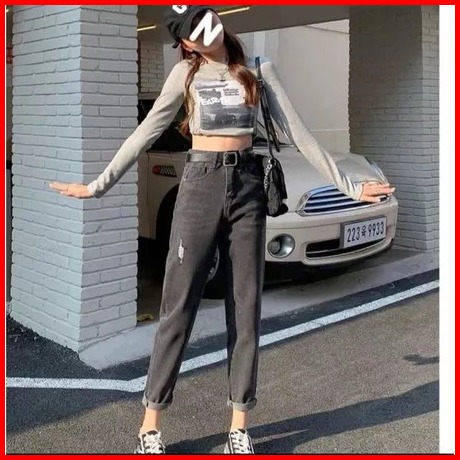 Celana Jeans Wanita Highwaist Boyfriend Jeans - Celana Boyfriend Wanita Sobek High Waist Kekinian