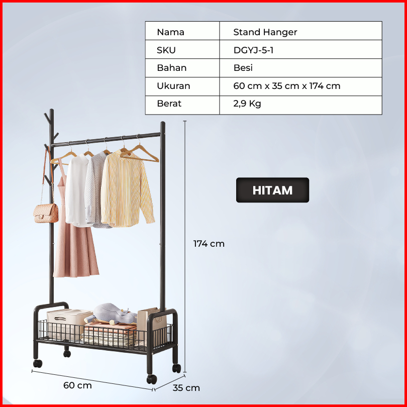 Dtg - Stand Hanger Besi Rak Penyimpanan Multifungsi Baju Tas Sepatu Jemuran Baju Minimalis Dgyj-5