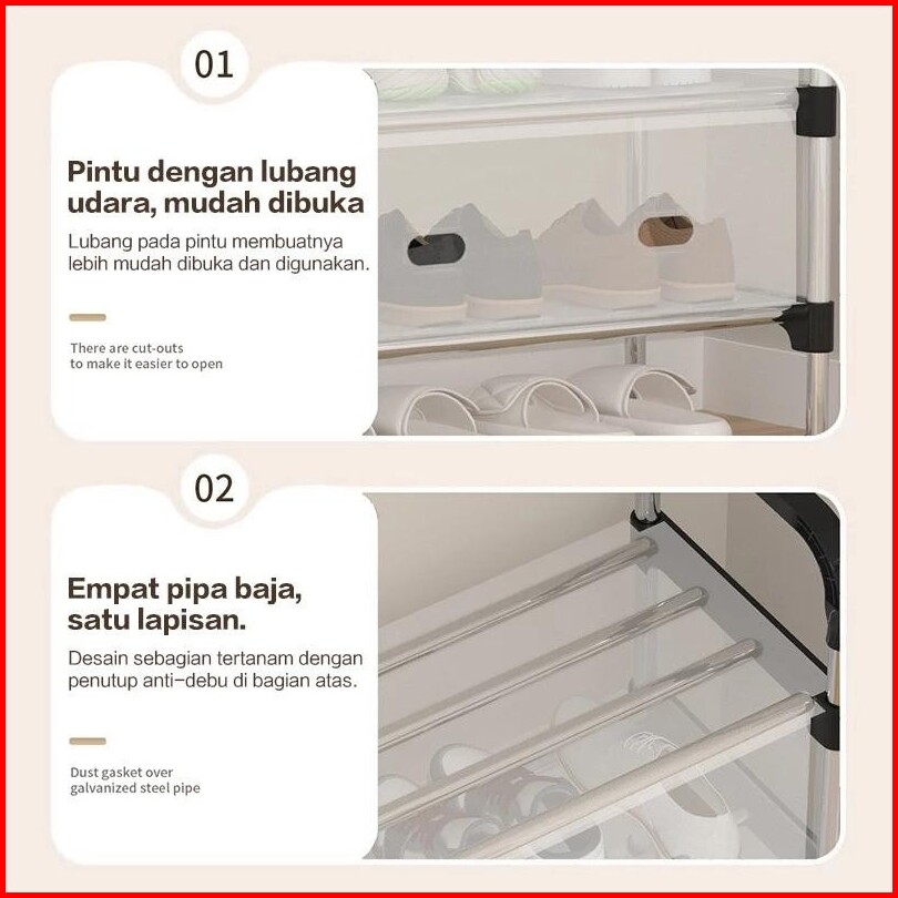 Paus Biru - Rak Sepatu Susun Tertutup Anti Debu Tempat Penyimpanan Sendal Serbaguna Anti Karat