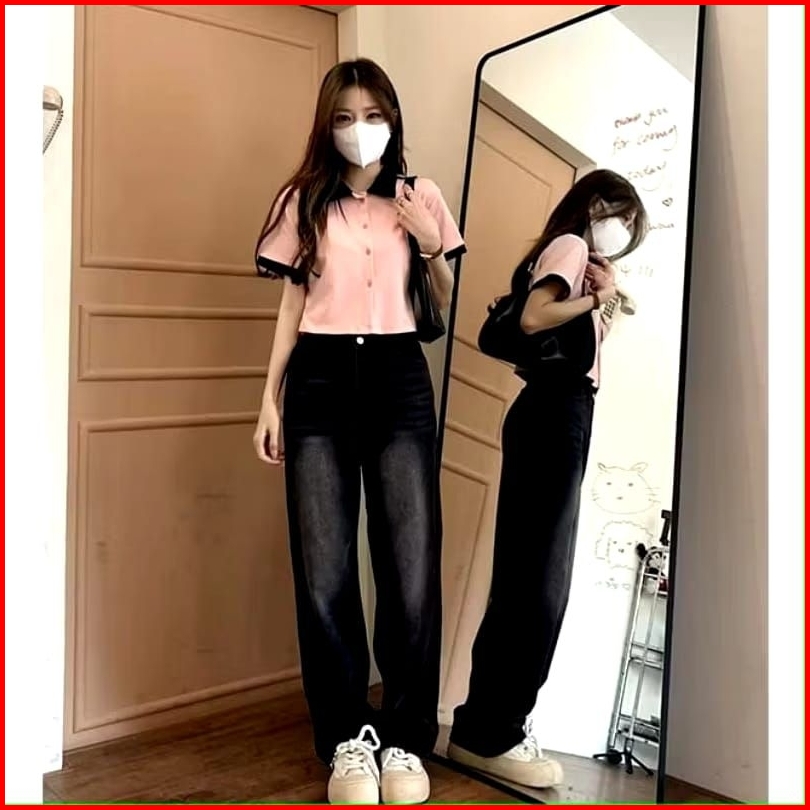 Highweist Baggy Loose Jeans Wanita Korean Style Gombran Wisker