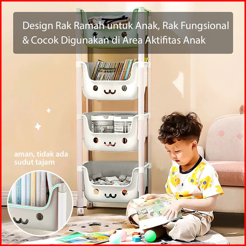 Paus Biru - Rak Susun Dorong Roda Serbaguna Karakter Lucu - Rak Mainan Anak 5 Tingkat Penyimpanan