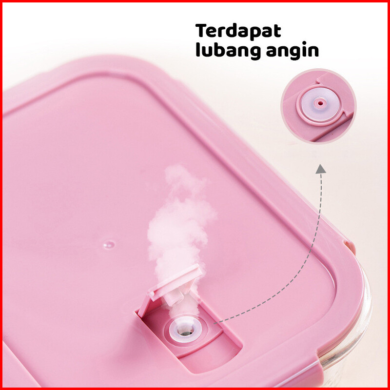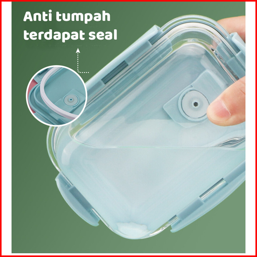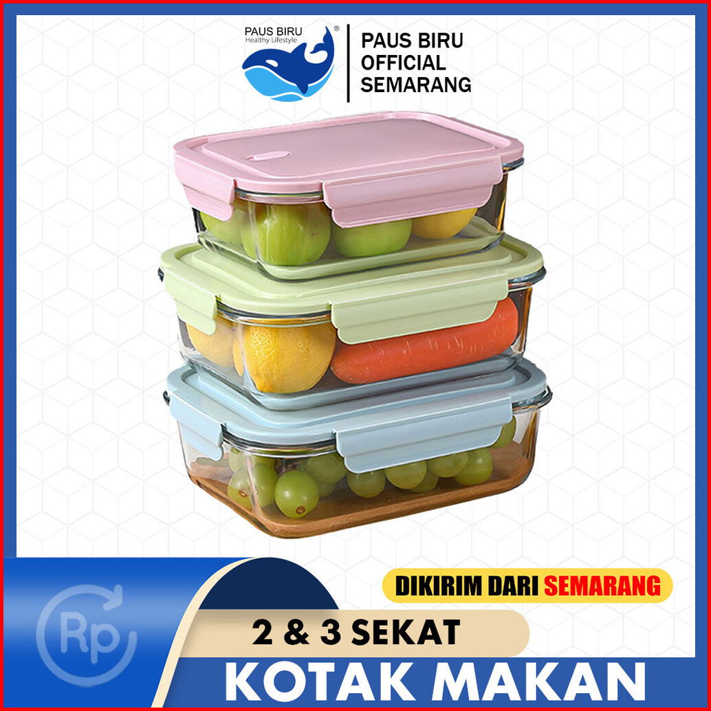 Paus Biru - Toples Lunch Box Kotak Tempat Penyimpanan Makan Bahan Kaca Microwave Oven Safe Bersekat