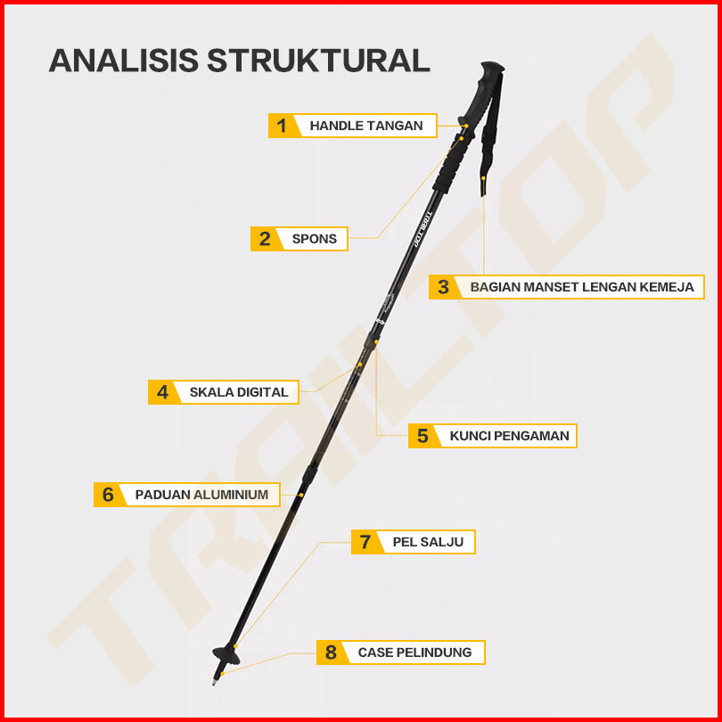 Trekking Pole Gunung Hiking Lipat 63-135cm Anti Shock Multifungsi Tongkat Tracking Pole Naik Gunung
