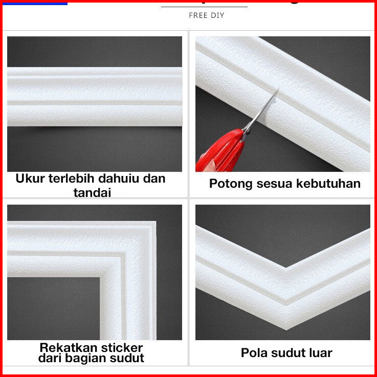 Paus Biru - Paket 5 Pcs Wall Border List 2.3 M - Wallborder Foam 3d List Dinding Wallpaper 3d Pvc