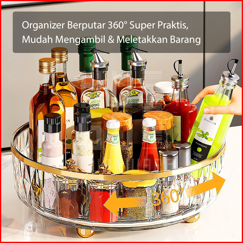 Hugo Wadah Putar Serbaguna Rak Putar Aqua Gelas Bumbu Toples Serbaguna Wadah Tray Akrilik Aesthetic