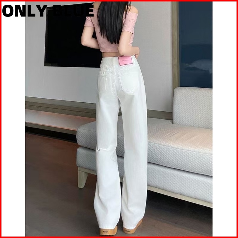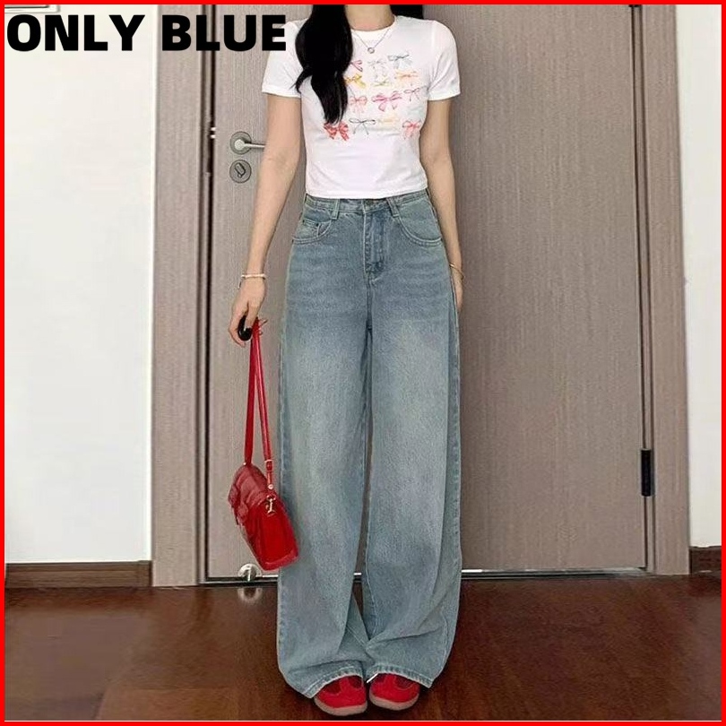 Only Blue Retro Straight Celana Jeans Terbaru Wanita Loose Thin High Waisted Wide Leg Denim Pants