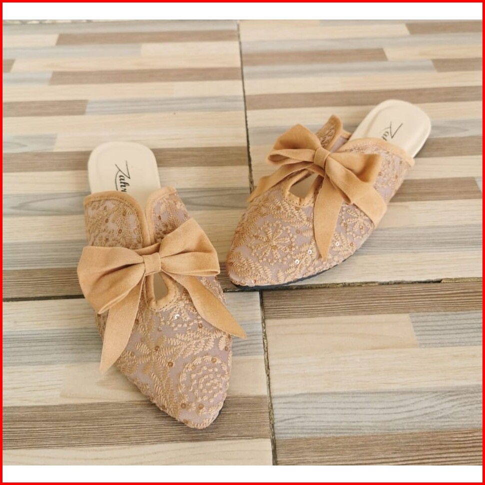 Arlaine- Pita Abstrak Selop Wanita Sandal Slop Wanita Sandal Brukat Sandal Slop Pita Mocca