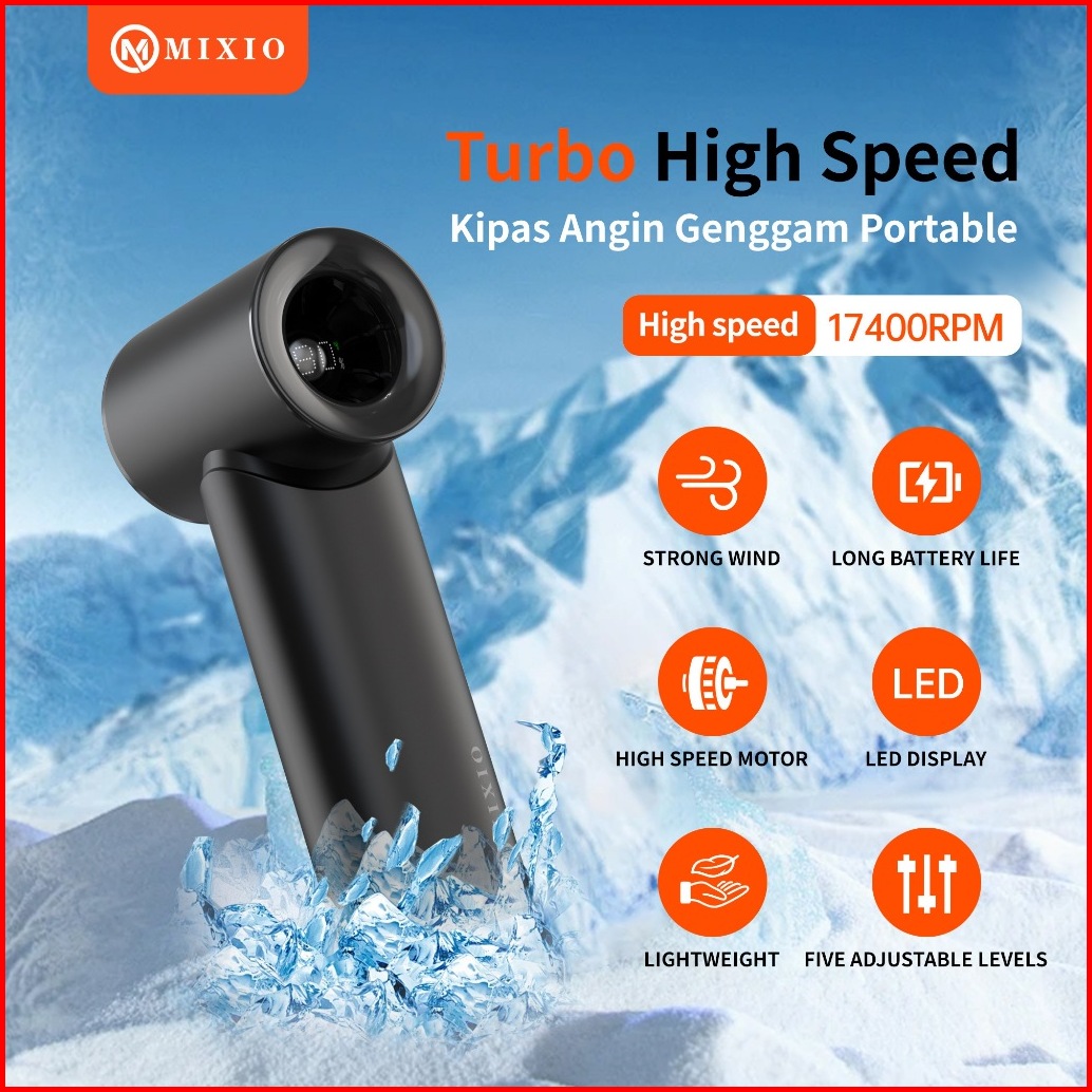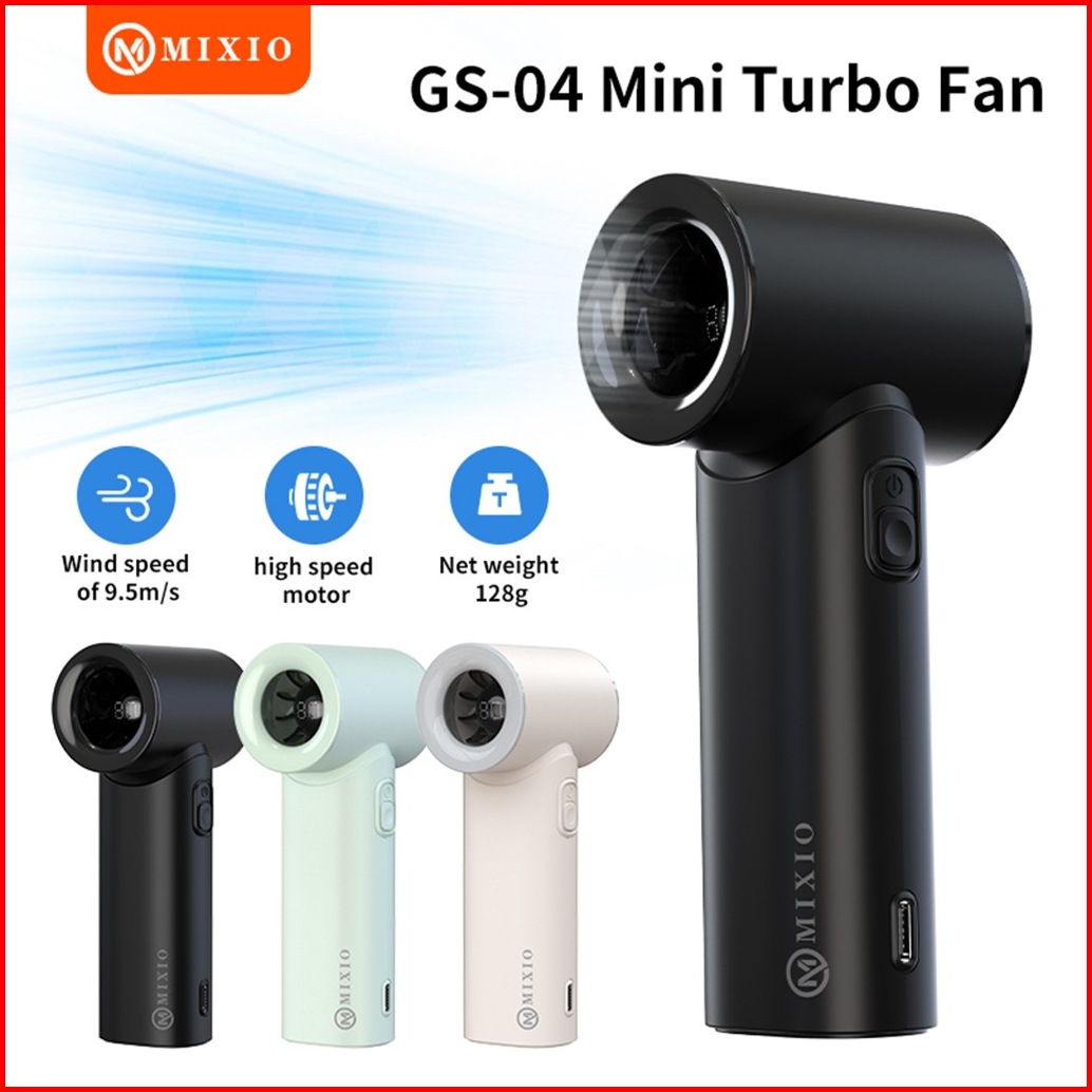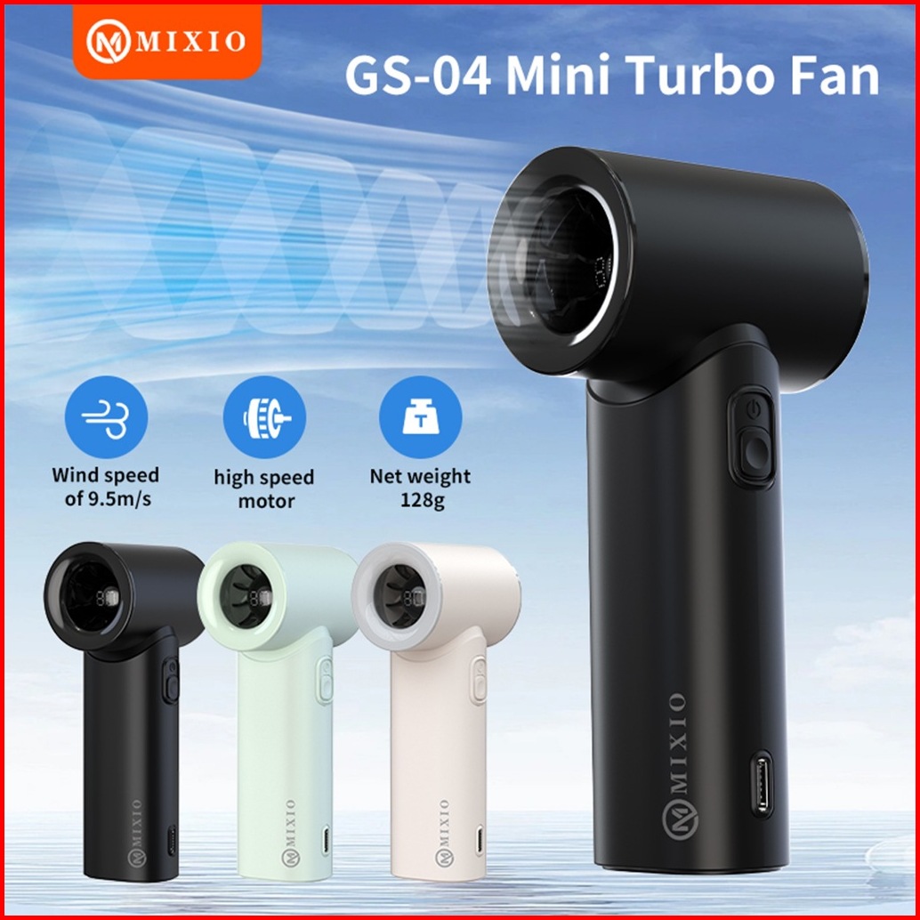 Mixio Gs-04 Mini Kipas Angin Turbo Strong Portable Handheld Rechargeable Mini Fan Lipat High Speed 17400rpm