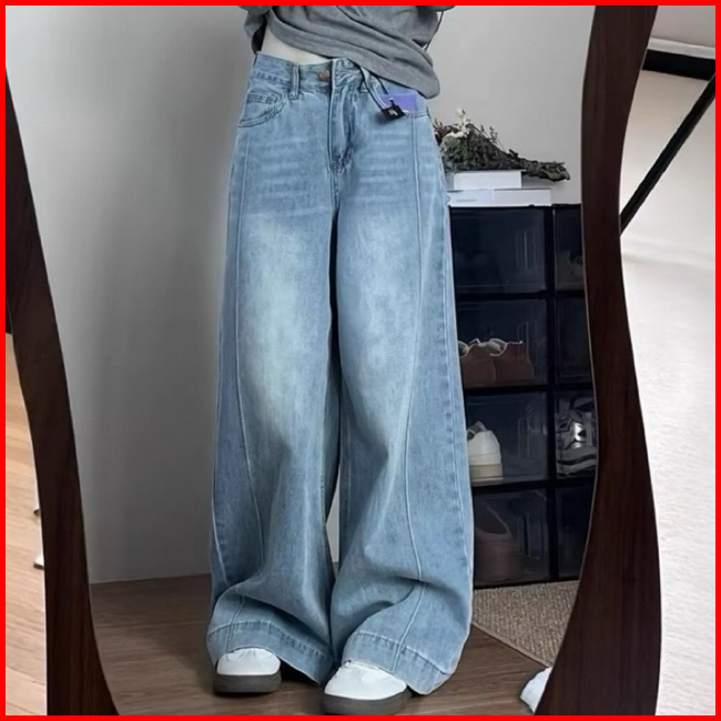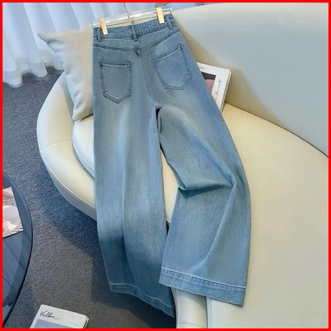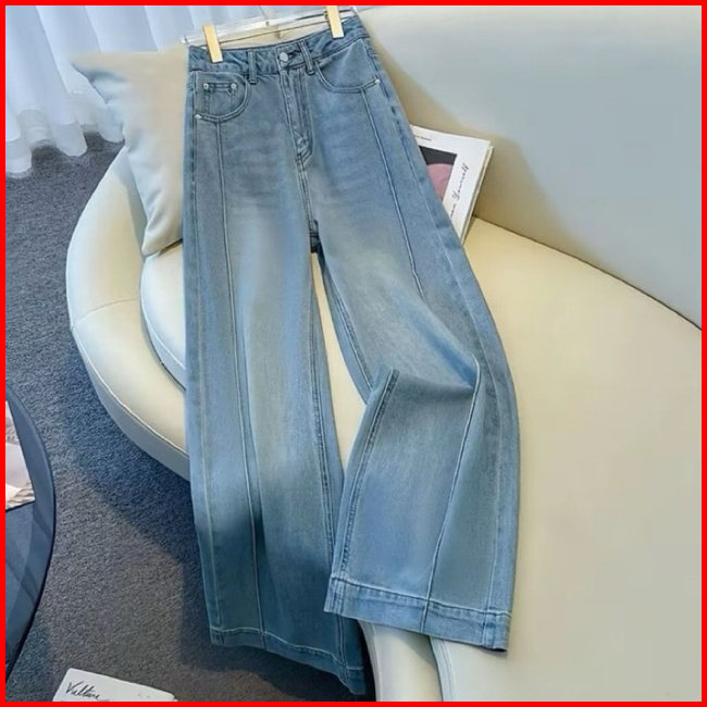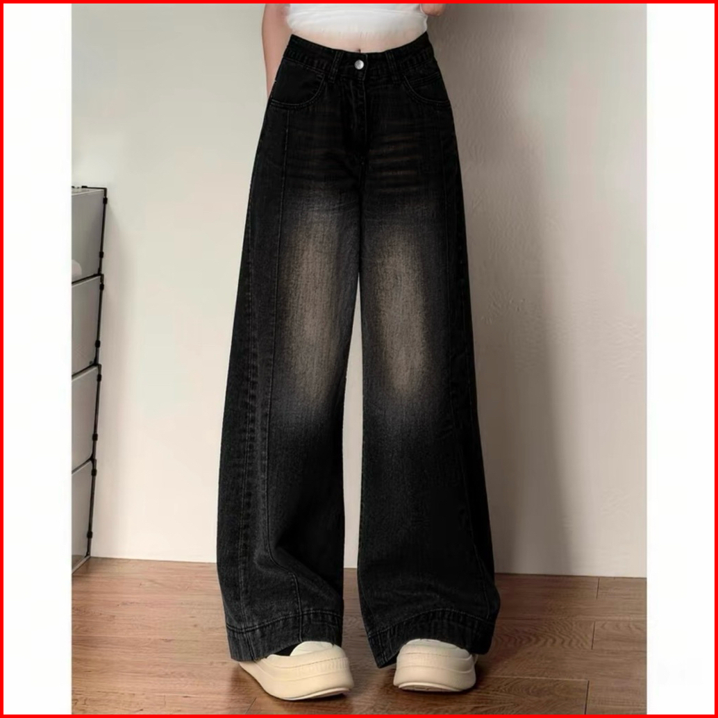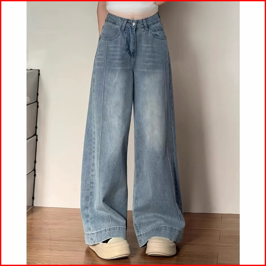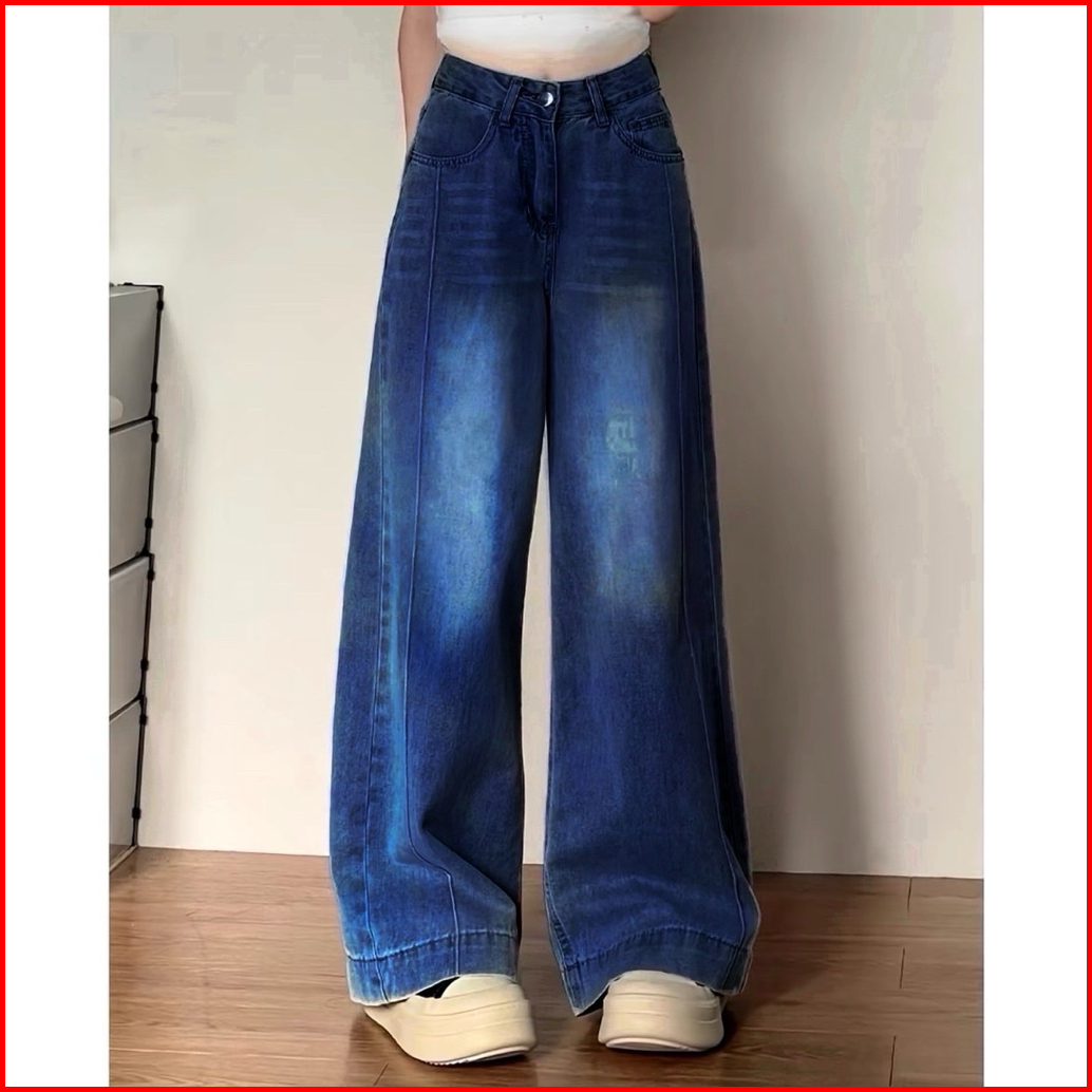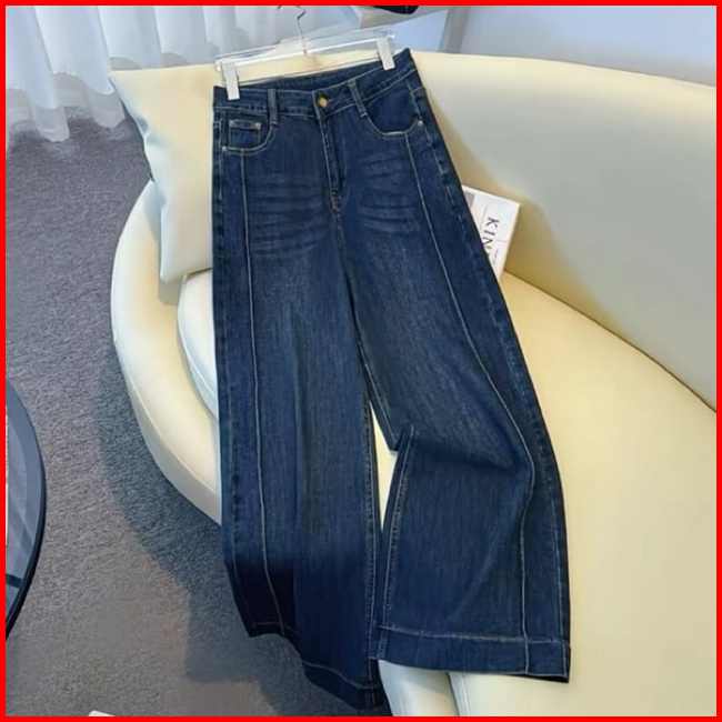 Celana Jeans Wanita Loose Lipat Panjang Highwaist Stretch Melar Wide Leg Celana Jeans Panjang Nyaman