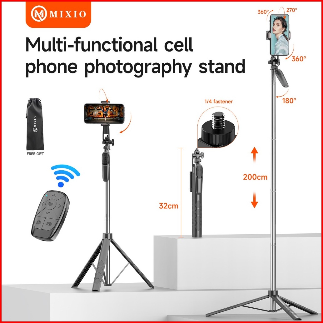 Mixio A91 200cm Tripod Tongsis Bluetooth Remote Selfie Stick