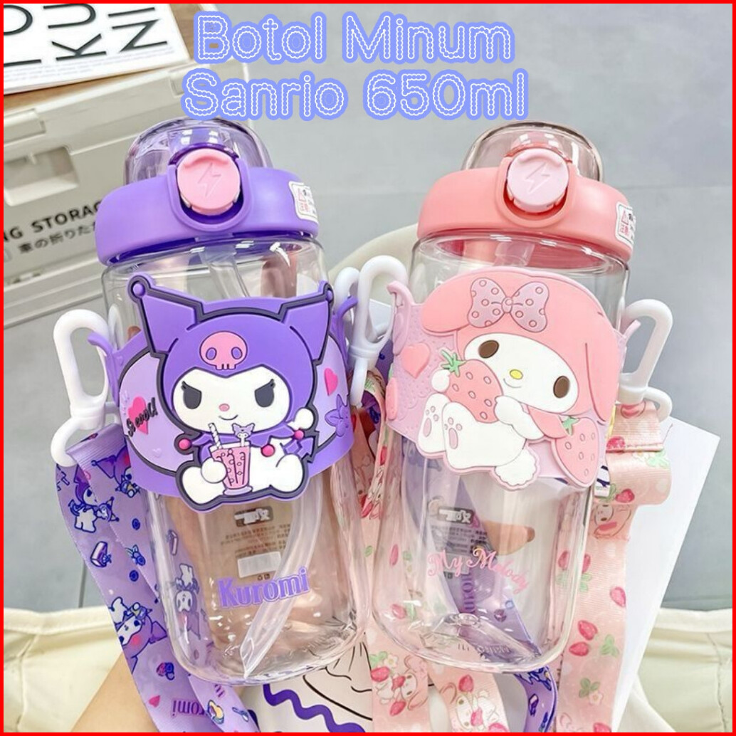 Botol Minum Tebal Anak Sanrio Viral Botol Anak Sekolah Tritan Tali Sedotan 550ml Kuromi My Melody Cinnamoroll