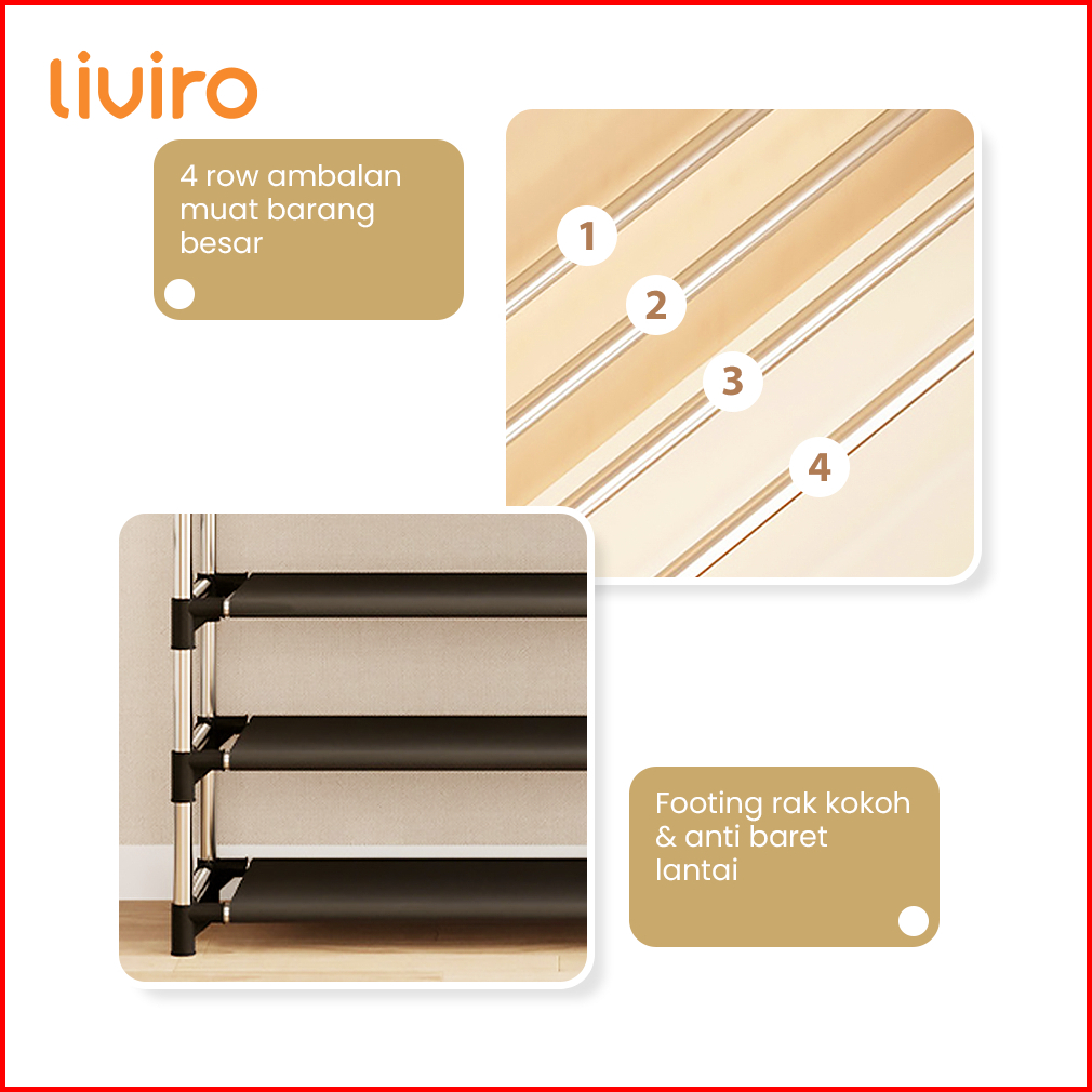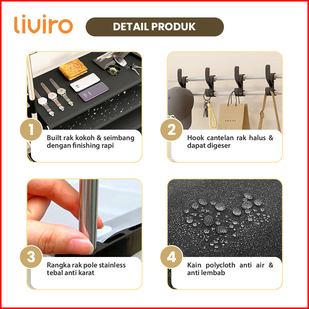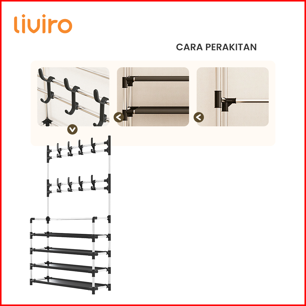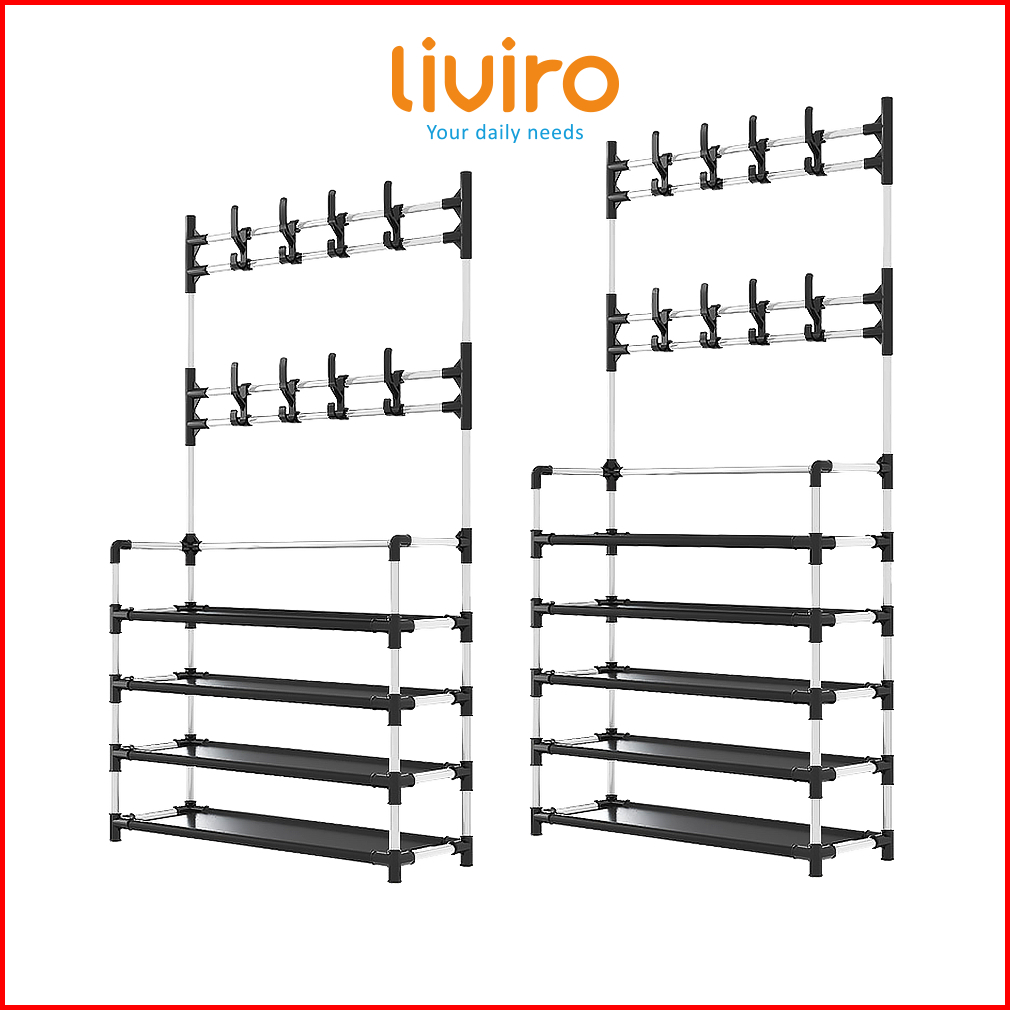 Liviro Rak Sepatu All In One Serbaguna 5 Susun Gantungan Baju Topi Tas