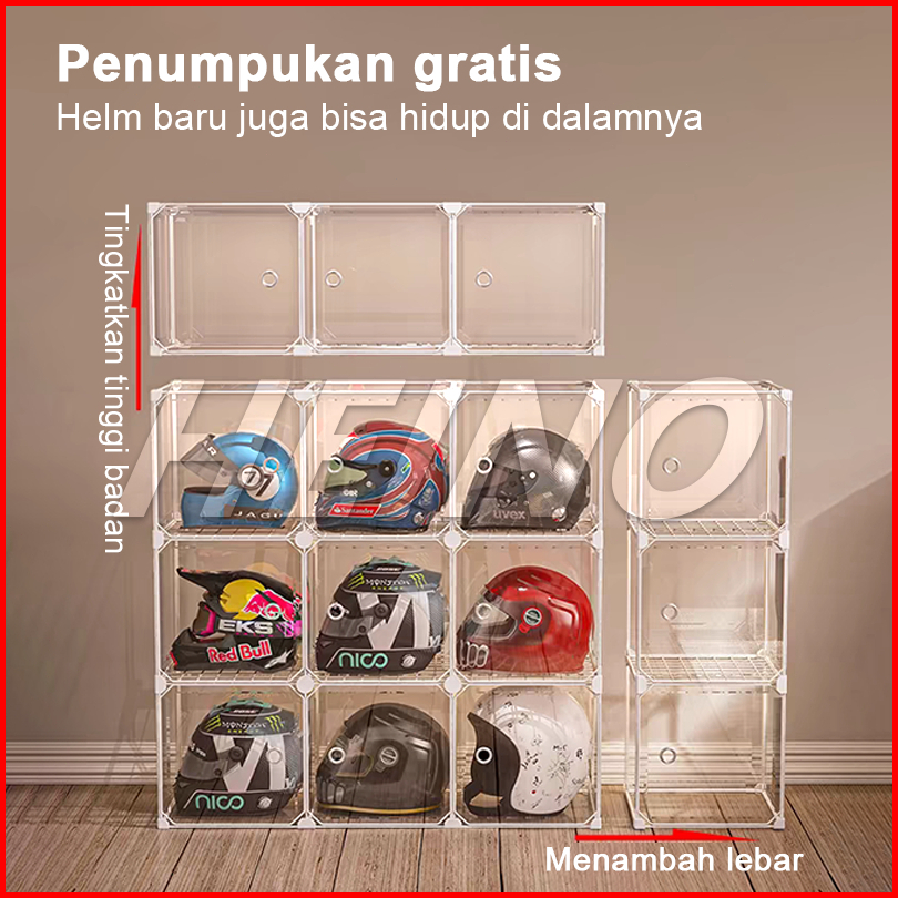 Heino Rak Helm Tertutup Tahan Debu Dan Serangga Lemari Pajangan Helm Rak Tas Lemari Tas