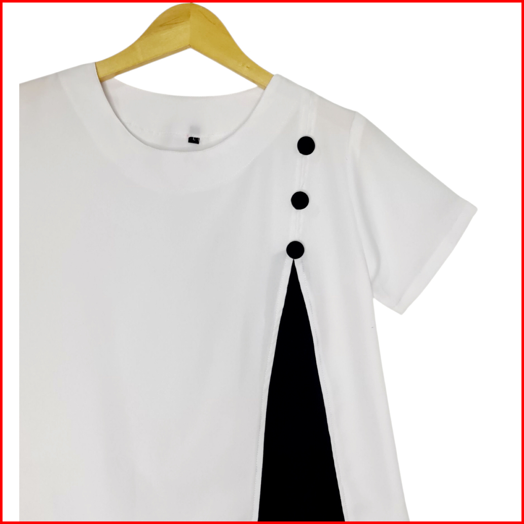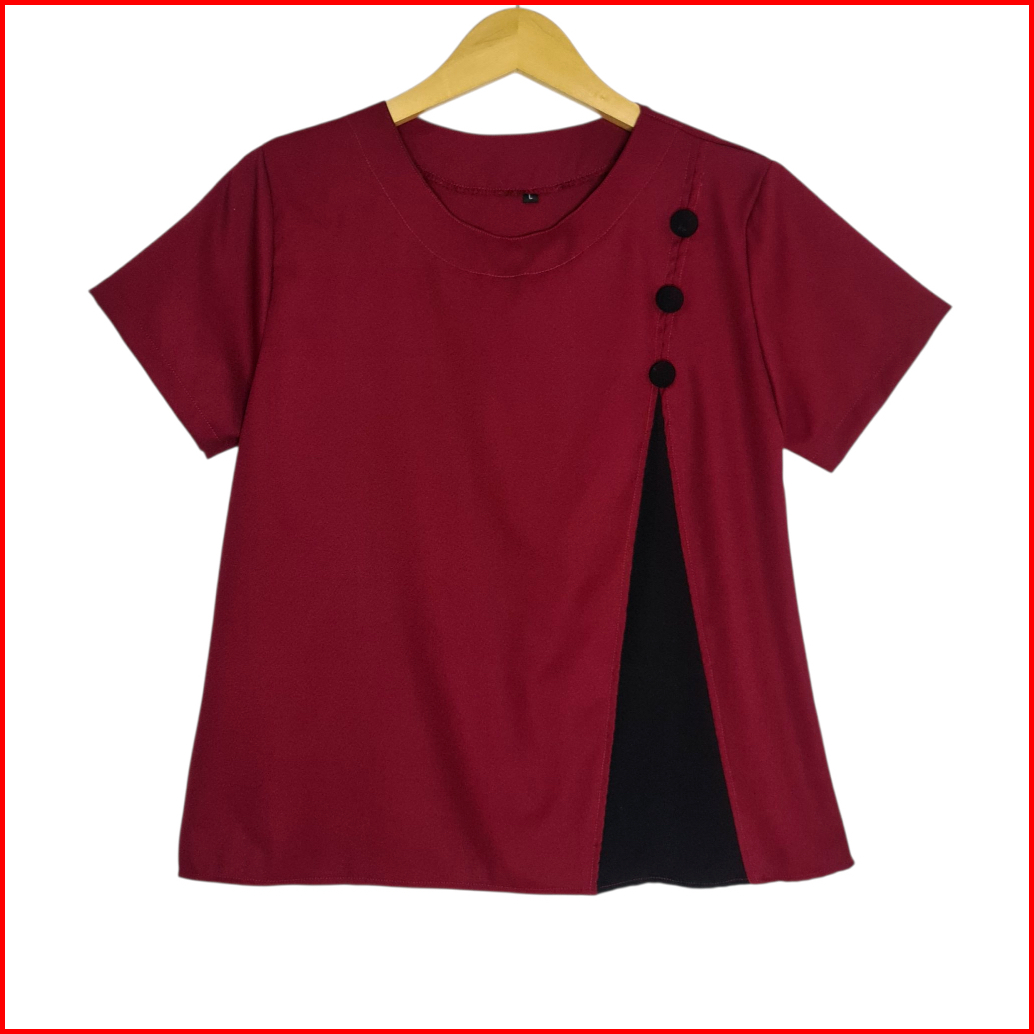 Lvl - Blouse Combi Kancing Kalista Atasan Wanita Kasual Blus Jumbo Cewek Variasi Model Baru
