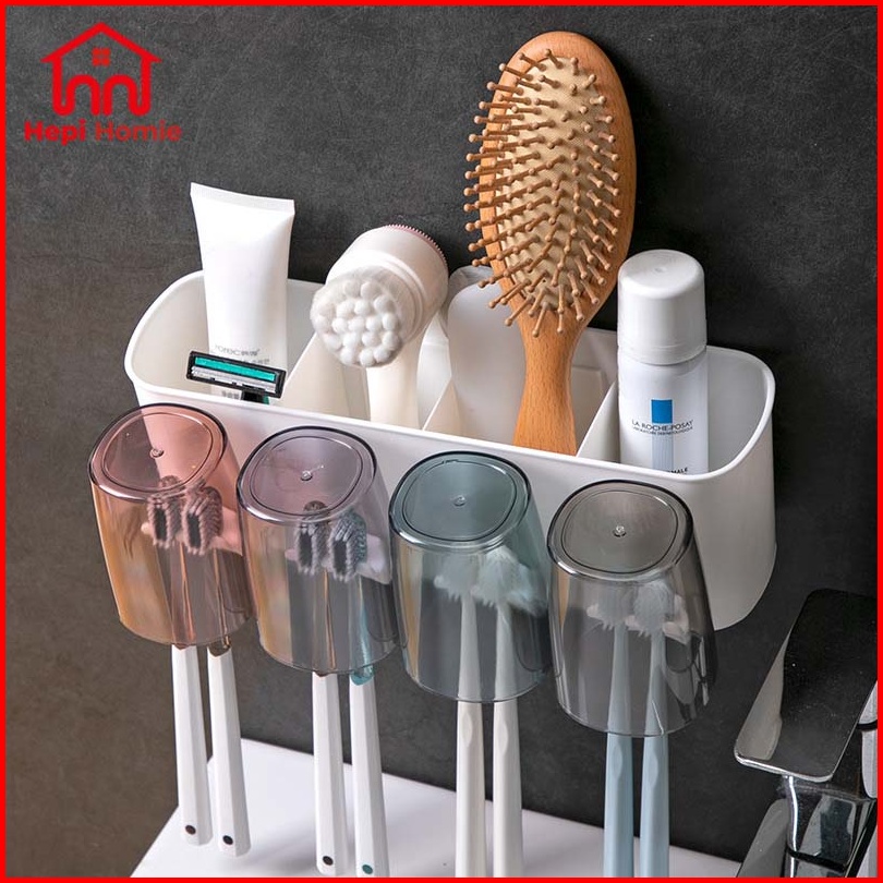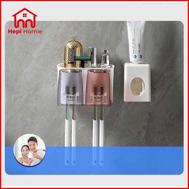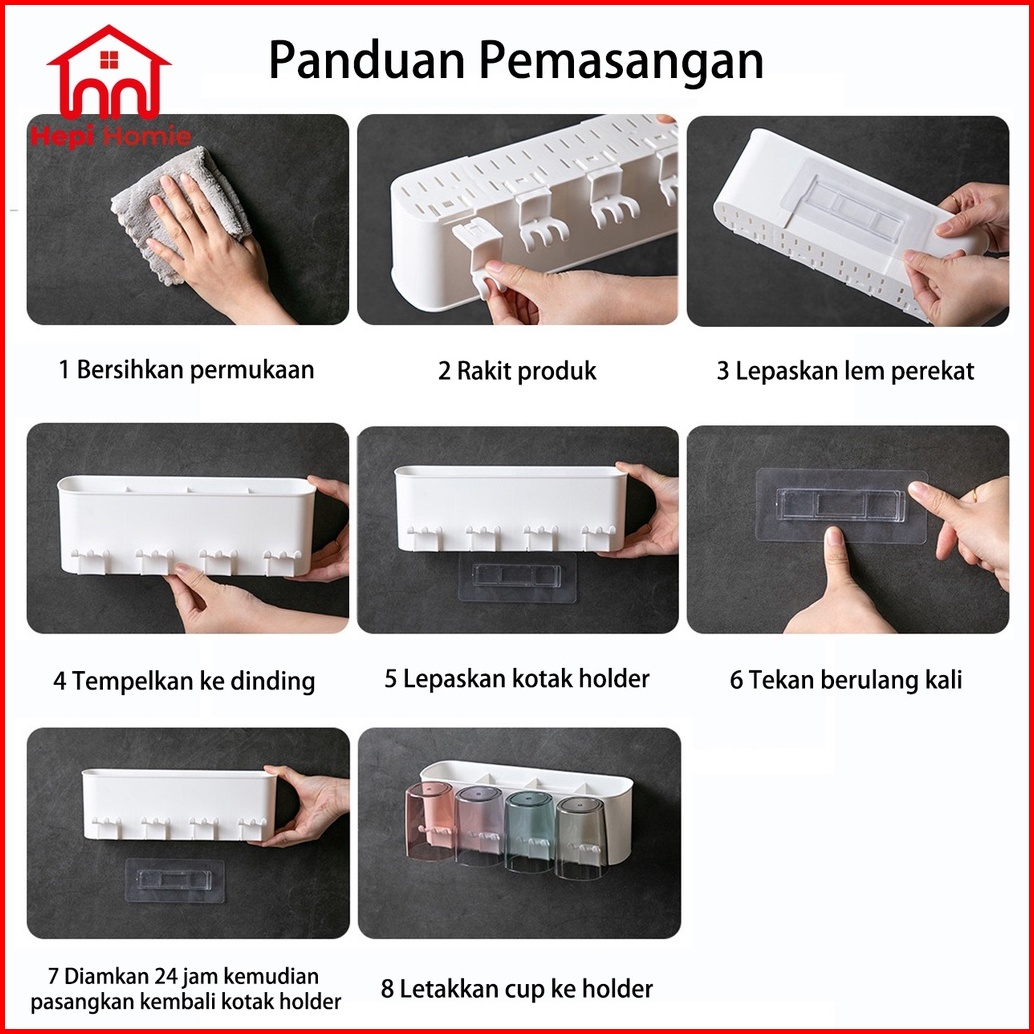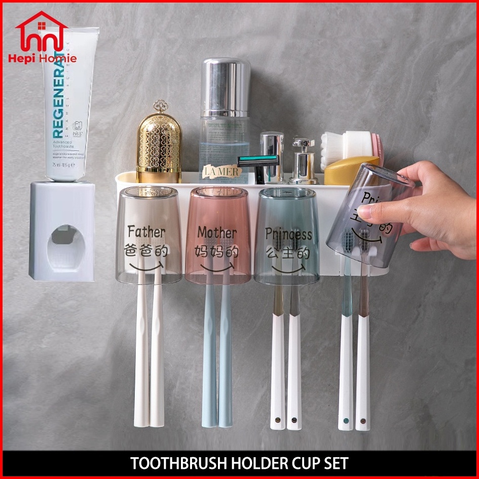 Hh Toothbrush Holder Cup Set Toothpaste Dispenser Rak Gantung Tempat Sikat Gigi Odol Tempel Dinding Hanging Wall Brushin