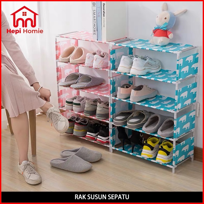 Hh Rak Sepatu Portable Shoes Rack 5 Layer Tempat Sendal Sandal Kain Plastik Bertingkat 3 Susun