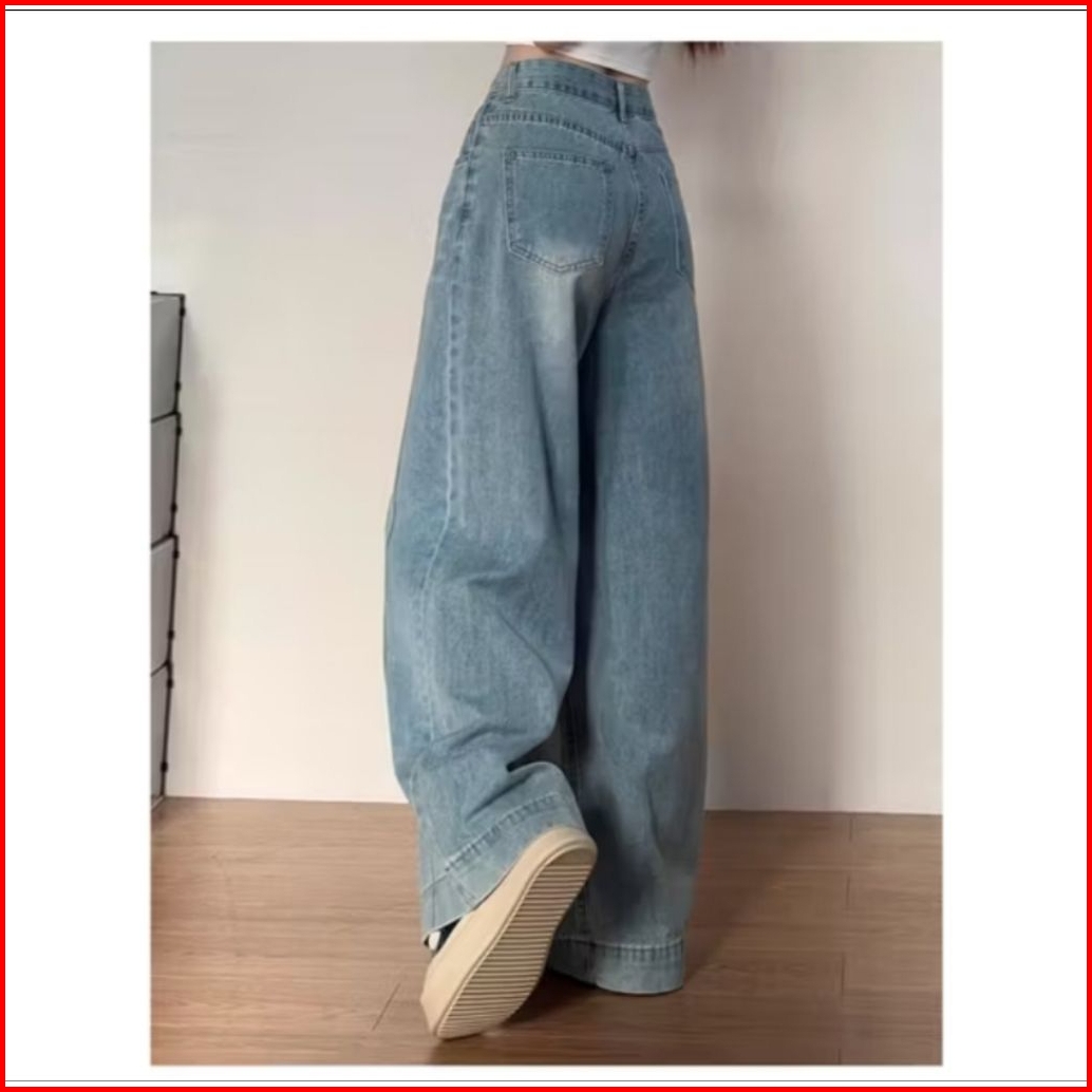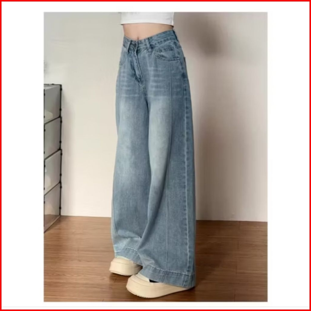 Yoyo- New Biru Kekinian Highwaist Kulot Loose Celana Wide Leg Jeans Wanita Korea Style