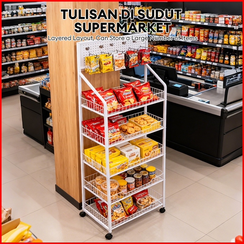 Rak Toko 3 4 5 Susun Rak Penyimpanan Snack Rak Display Makanan Minuman Mobile Rak Penyimpanan Lantai Multi-layer
