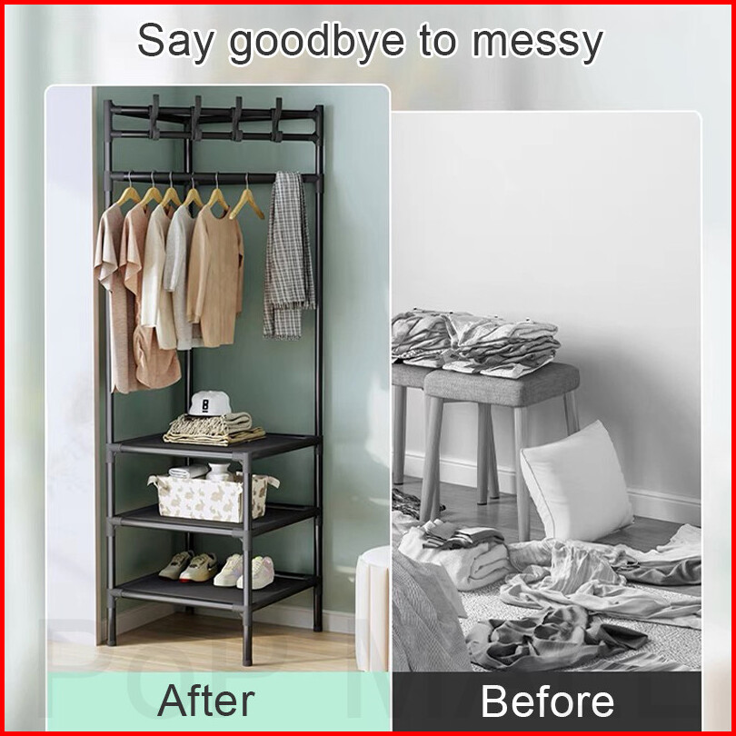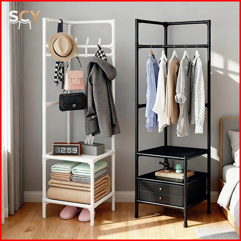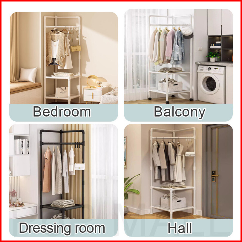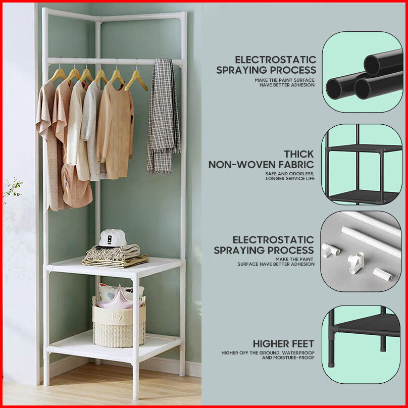 Rak Pakaian Sudut 2 3 Lantai Rak Gantungan Pakaian Kamar Tidur Multi Fungsi Open Rak Pakaian Hemat Ruang Mudah Dipasang