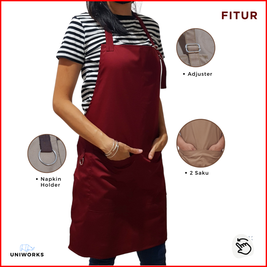 Uniworks Apron Barista Seri V01m03 Celemek Dapur Bahan American Drill