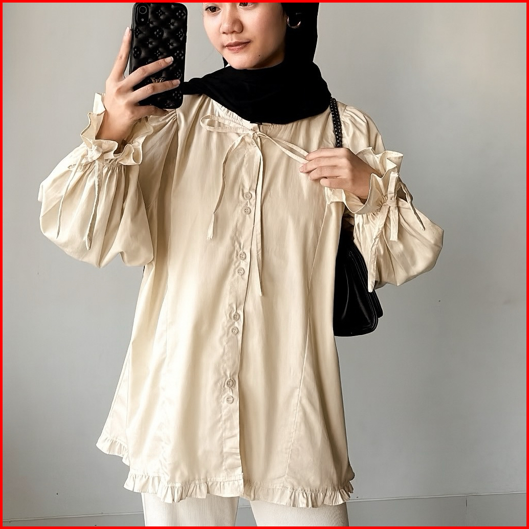 Calaya Kemeja Rempel Tali Full Kancing Polo Linen