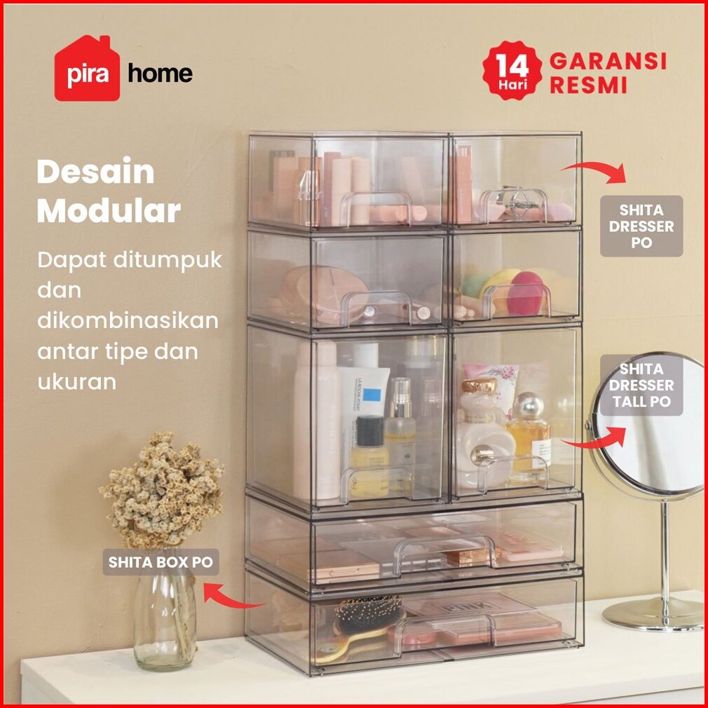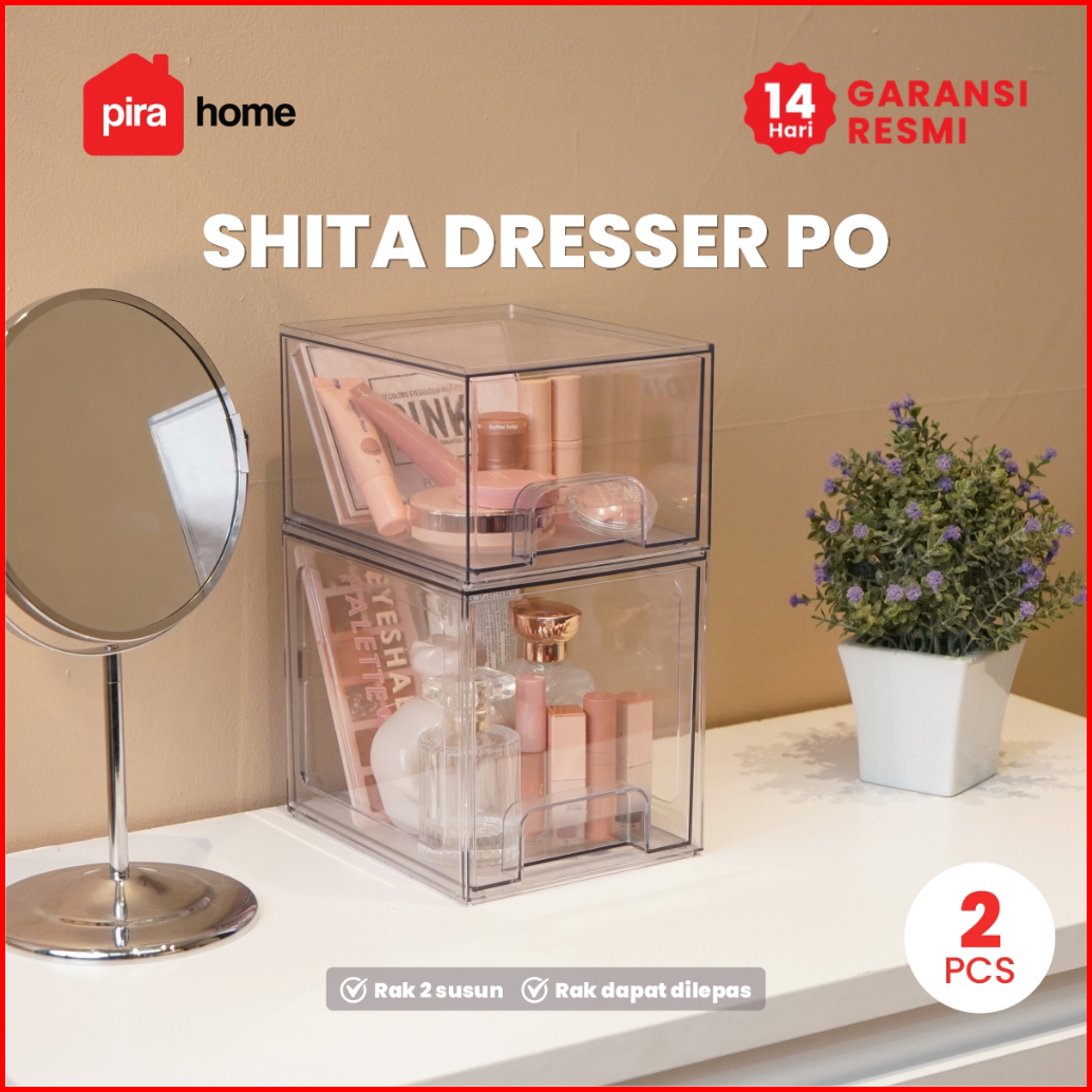 Pira Home - Shita Dresser Po Kotak Penyimpanan Make Up Bening Tempat Penyimpanan Transparan 2 Susun