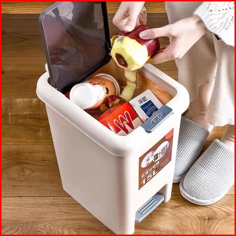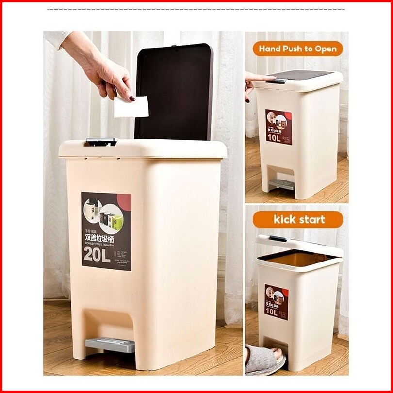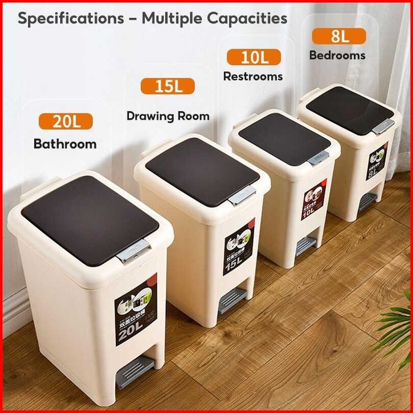 Paus Biru - Tempat Sampah Injak 8l 10l 15l 20l Tong Sampah Plastik Tertutup Trash Bin Kotak Sampah Dapur Kamar Mandi Rua