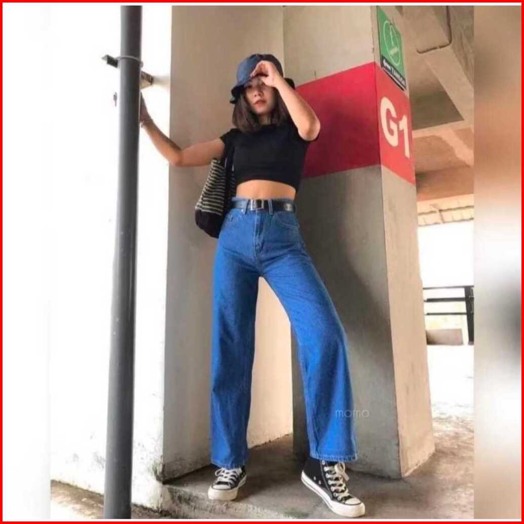 Highwaist Loose Jeans Spray Style Baggy Jeans Celana Kulot Loose Jeans Style Baggy