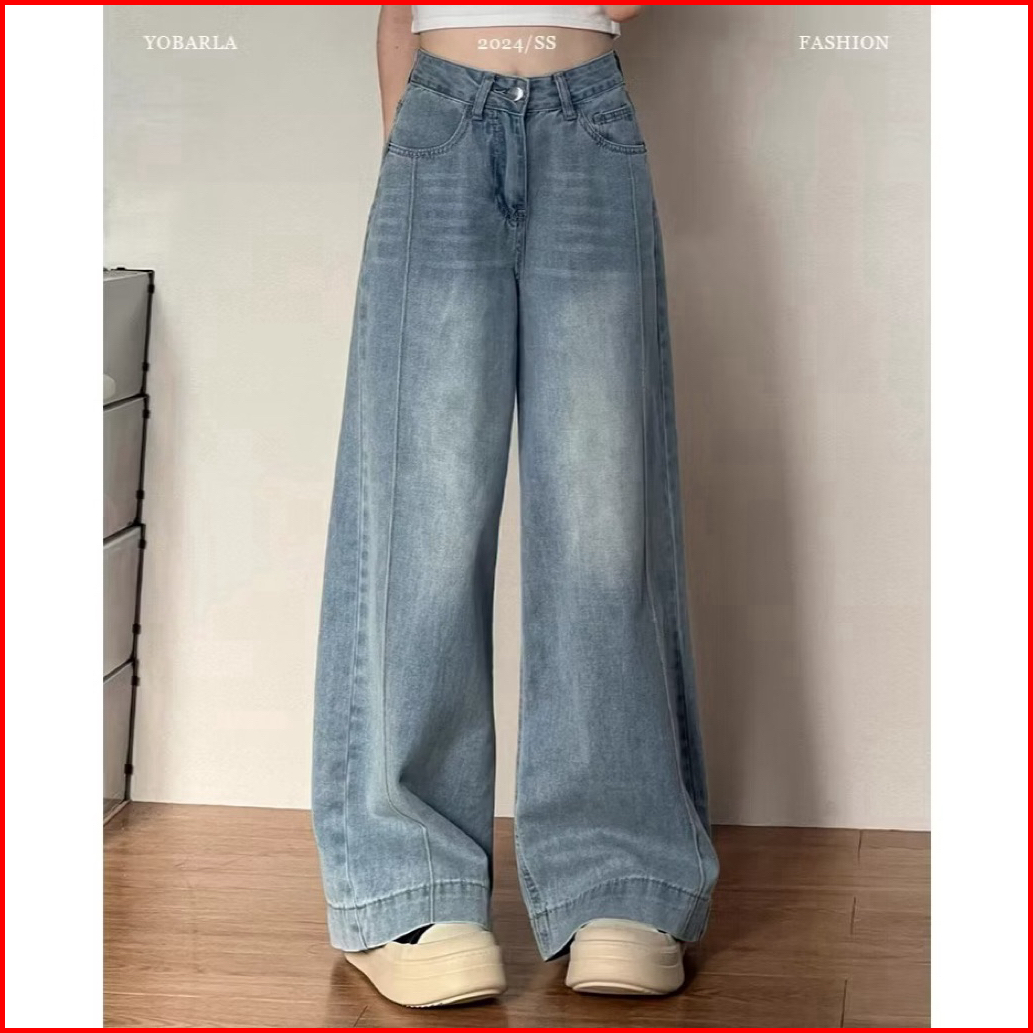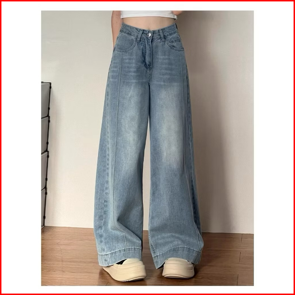 Lulu Biru Premium Kulot Highwaist Celana Panjang Wanita-baggy Jeans Wanita--baggy Baggy Denim