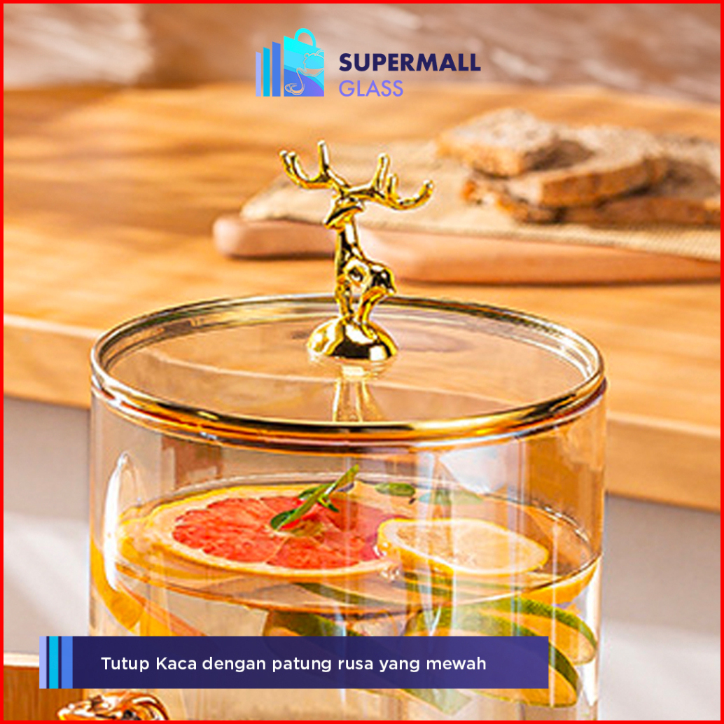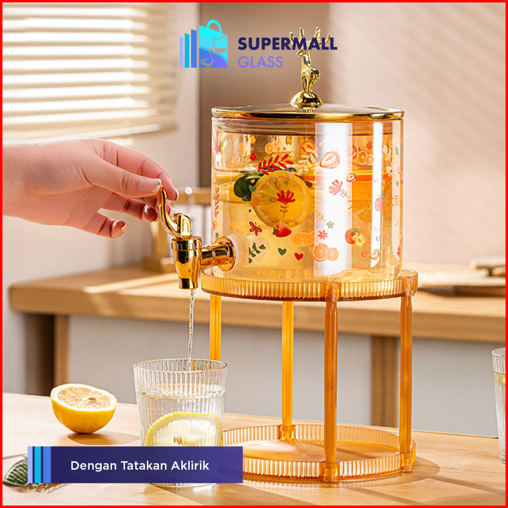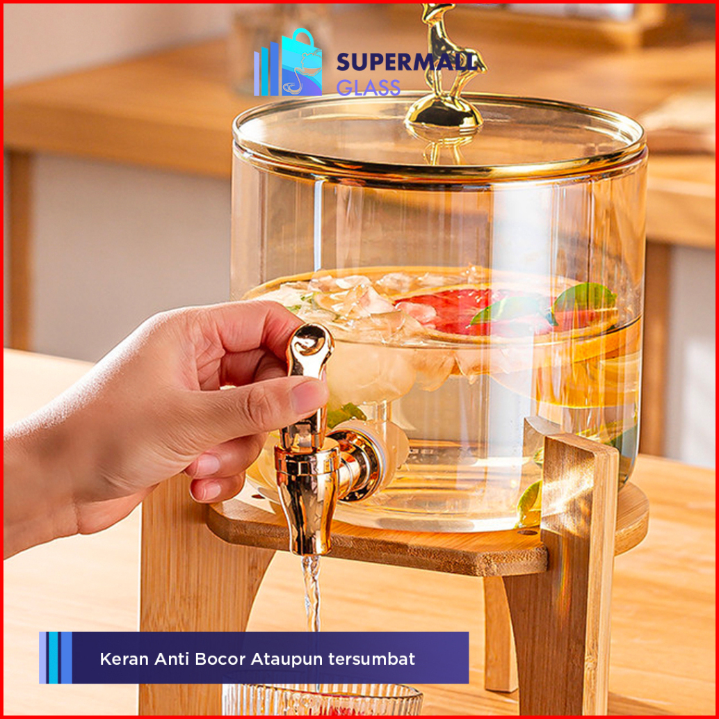 Sg Dispenser Air Kaca Ketel Air Dingin Kaca Dengan Tatakan Kayu Tempat Minuman Es Jus 2.6l