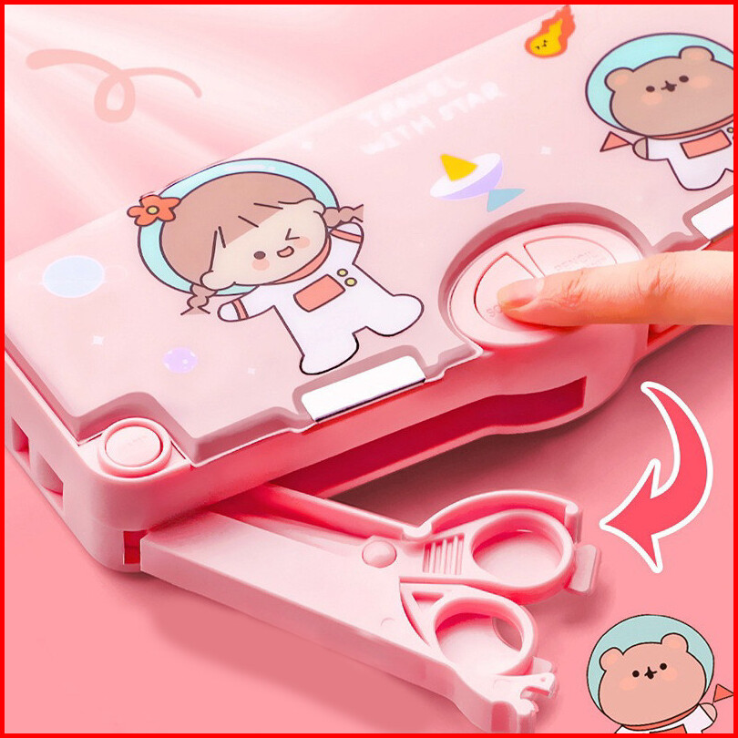 Paus Biru - Aimilo Kotak Pensil Multifungsi Lengkap Peruncing Gunting Isolasi Penghapus Penggaris