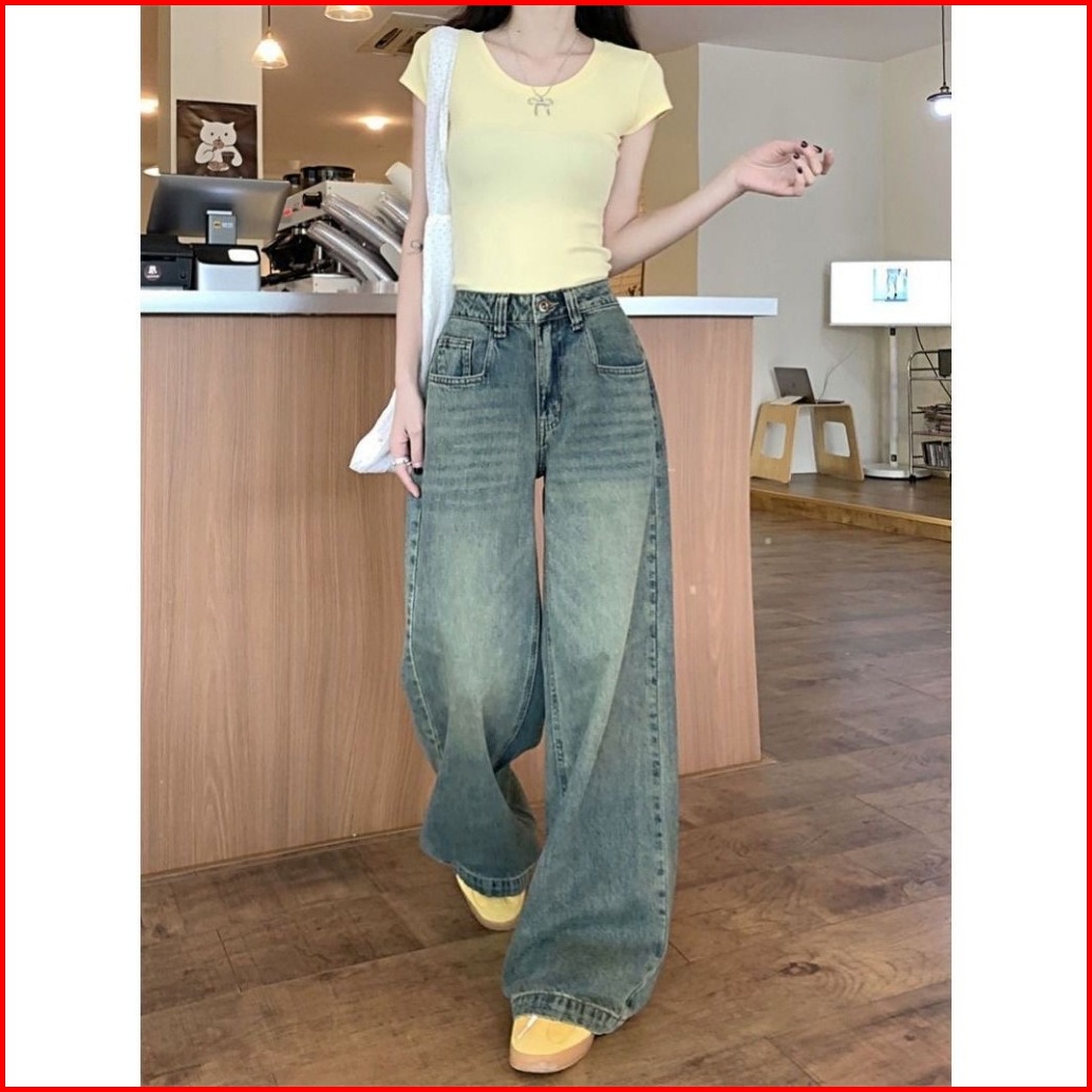 Jomelinjeans - Jns-207 Celana Jeans Panjang Wanita Retro Highwaist Biru Loose Korean Style