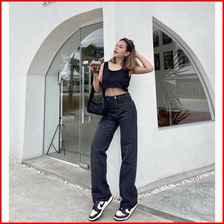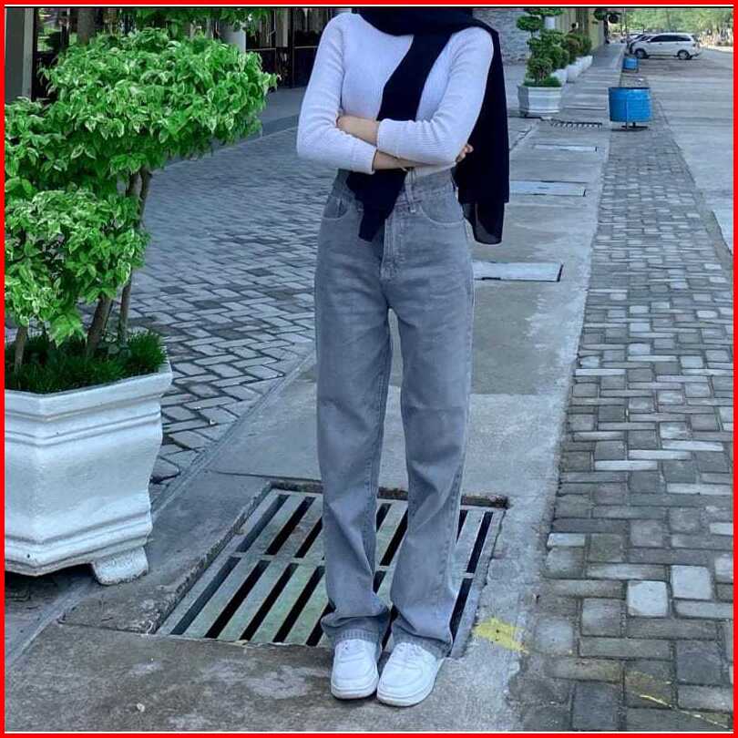 Highwaist Kulot Jeans Wanita Loose Highwaist Celana Loose Kulot Jeans