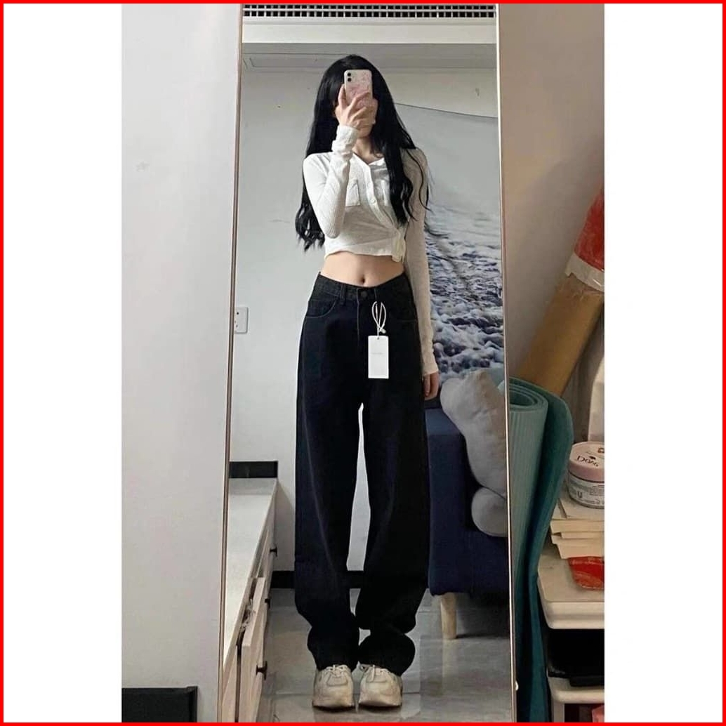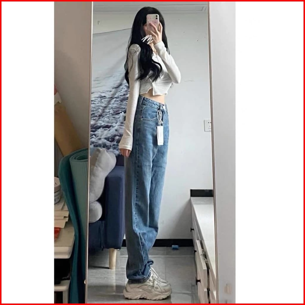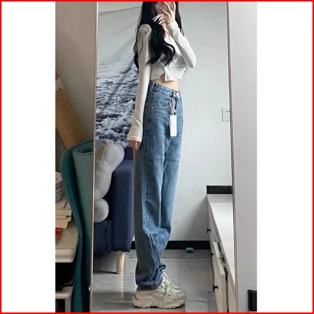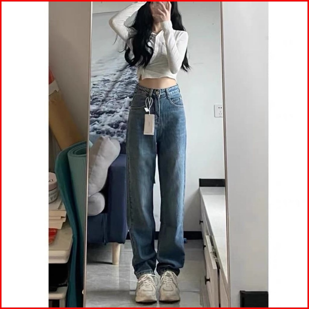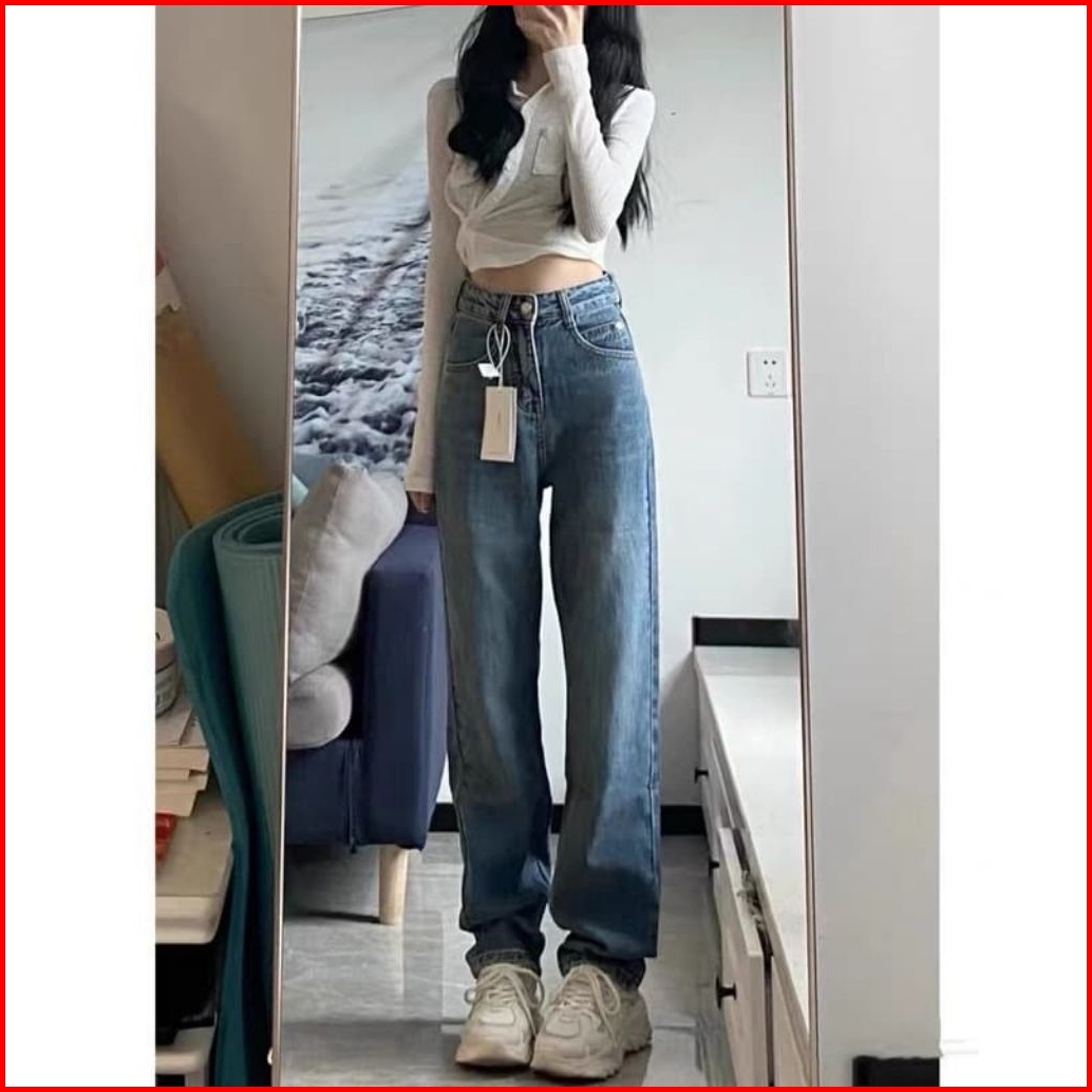 Classic - Celana Jeans High Waist Wanita Korean Style Serbaguna Baggy Pants Kasual Biru Retro