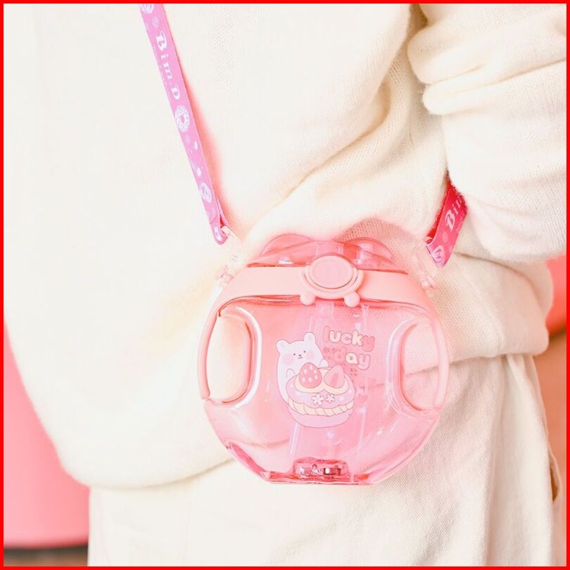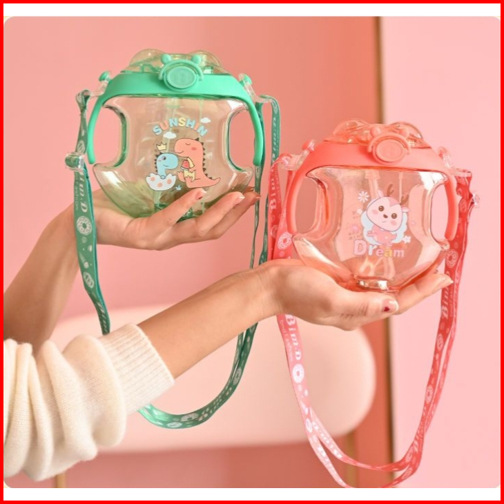 Botol Minum Plastik Lapis Silikon Transparan Gagang Aneka Motif Gambar I Botol Minum Lock Tenteng Tali Kain I 450ml I Bp