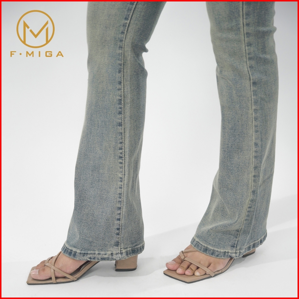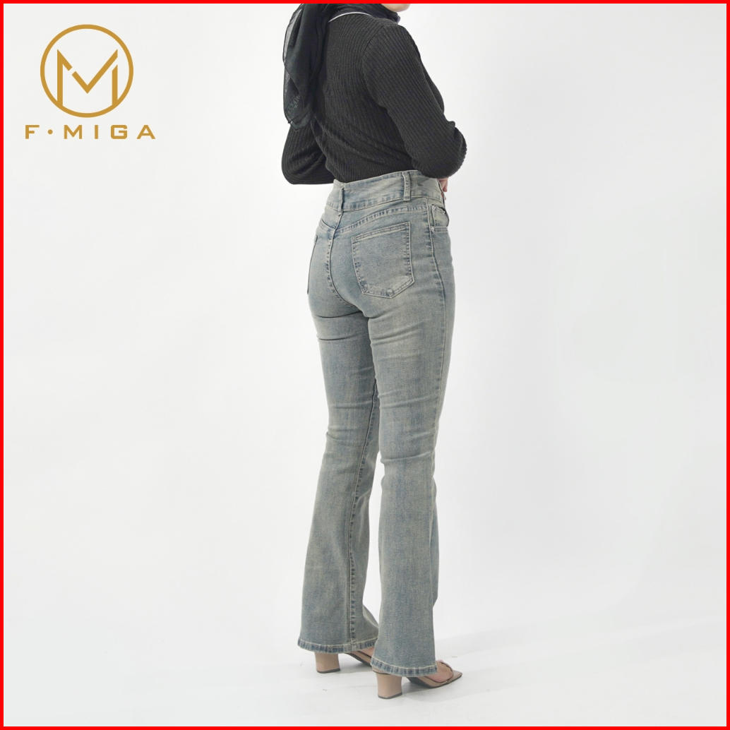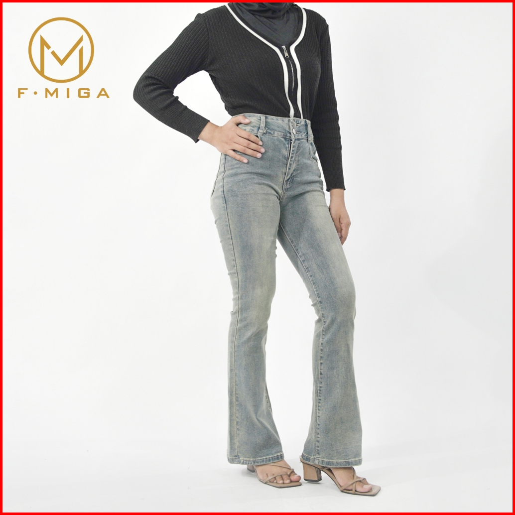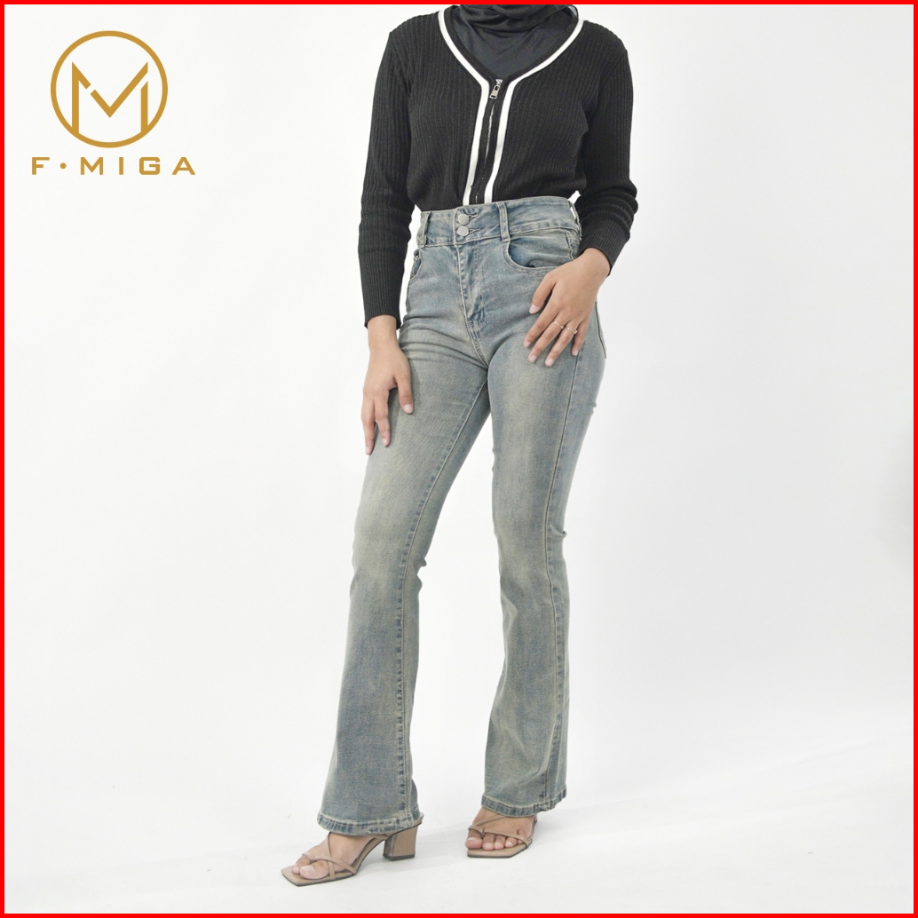 F Miga C170 Korean Style High Waist Cutbray Flare Stretch Celana Jeans Wanita - Biru Muda