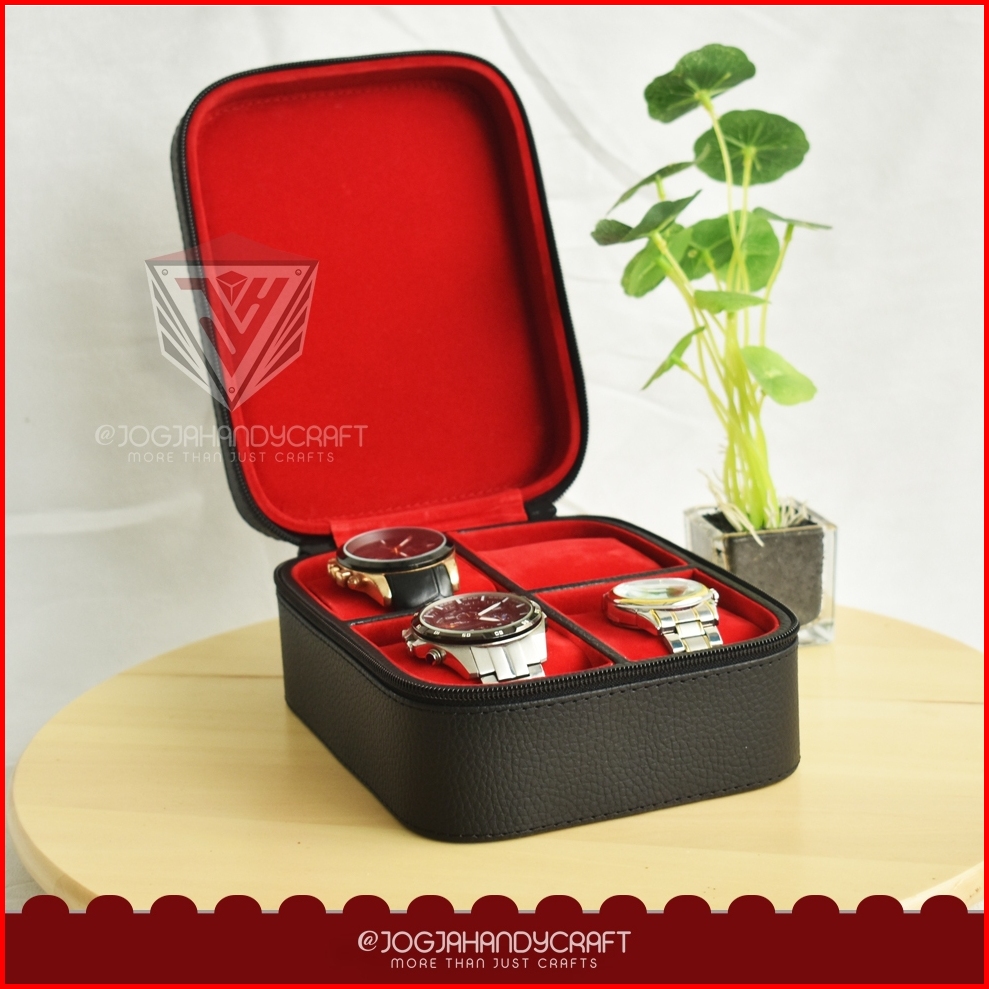 4 Slots Travel Watch Box Jumbo Resleting Tempat Jam Tangan Kotak Jam Tangan Box Jam